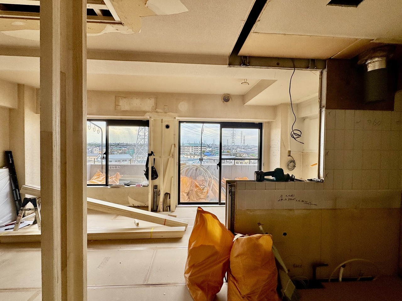 リノベーション工事中。家族が自然に集りそうな広さが魅力のLDK。
