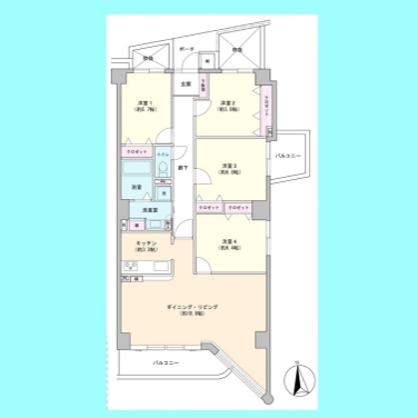 | 間取 | 4LDK (LDK22.1帖、洋室6.8帖、洋室6.4帖、洋室5.8帖、洋室5.7帖) | ||