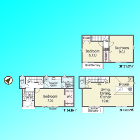 | 間取 | 3LDK~3LDK (LDK19帖、洋室9帖、洋室7.5帖、洋室6.12帖) | ||