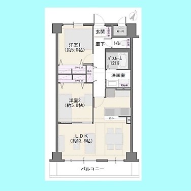| 間取 | 2LDK (LDK13.8帖、洋室5帖、洋室5帖) | ||
