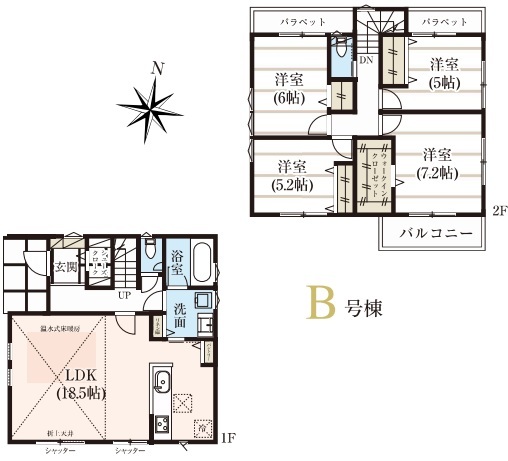 | 間取 | 4LDK (LDK18.5帖、洋室7.2帖、洋室6帖、洋室5.2帖、洋室5帖) | ||