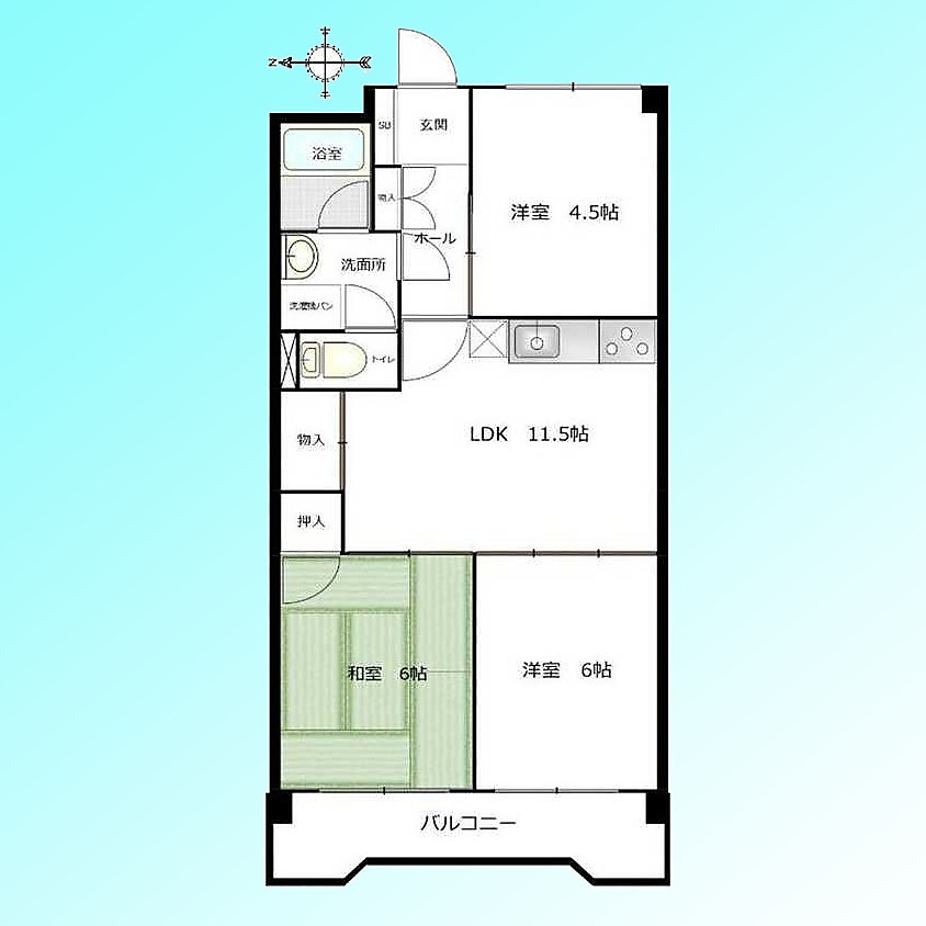 | 間取 | 3LDK (LDK11.5帖、洋室6帖、洋室4.5帖、和室6帖) | ||