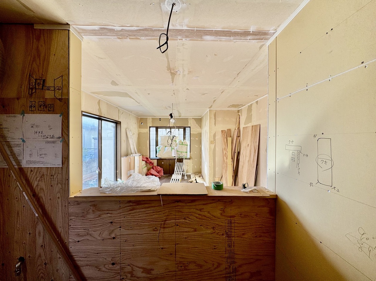 リフォーム工事中。家族団らんの時間も増えそうな、くつろぎのLDK。