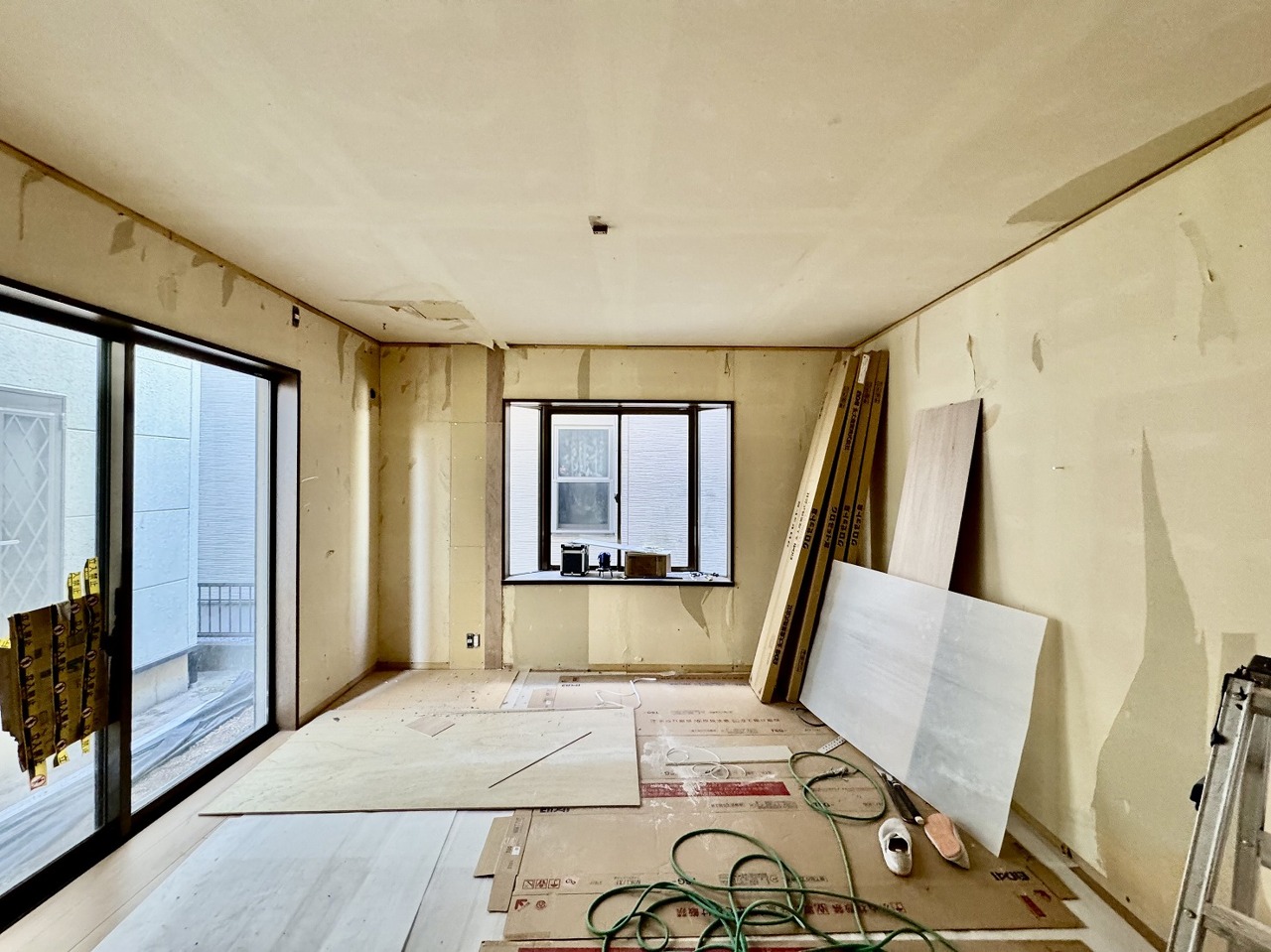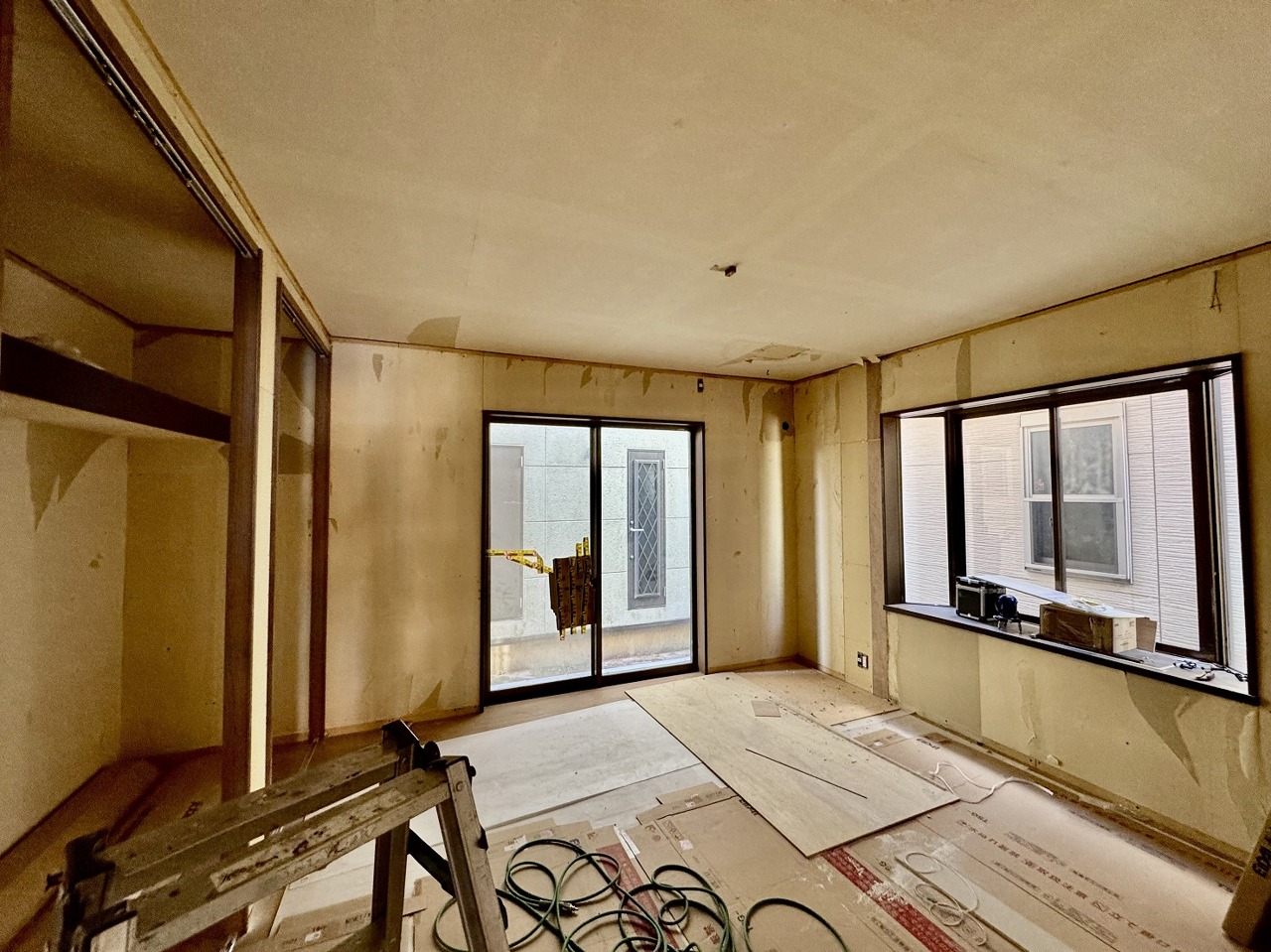 リフォーム工事中。ご家族みんながゆったりくつろげる広々リビング。