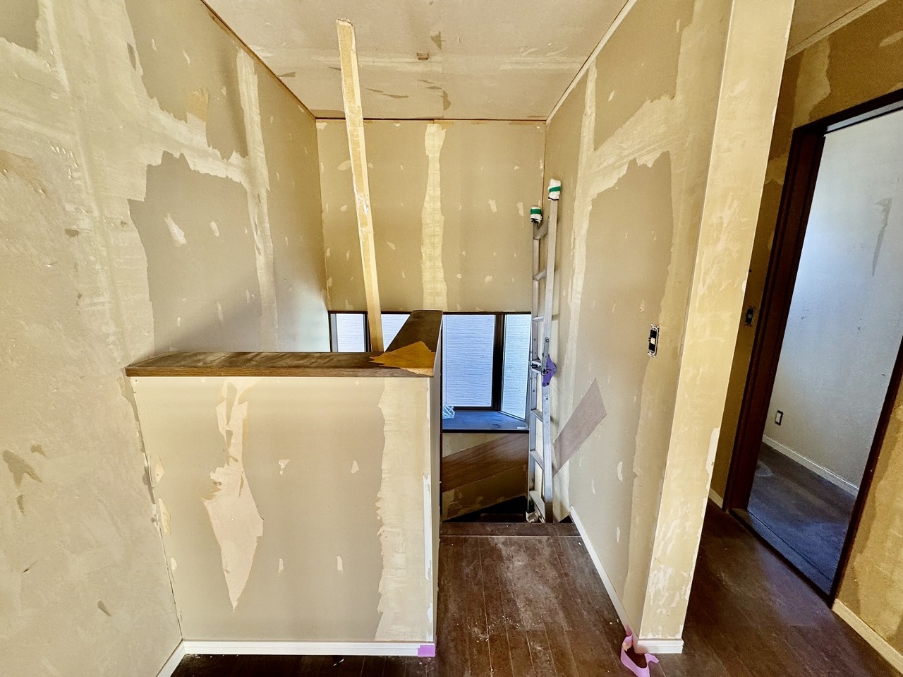 リフォーム工事中。階段には手すりがついています