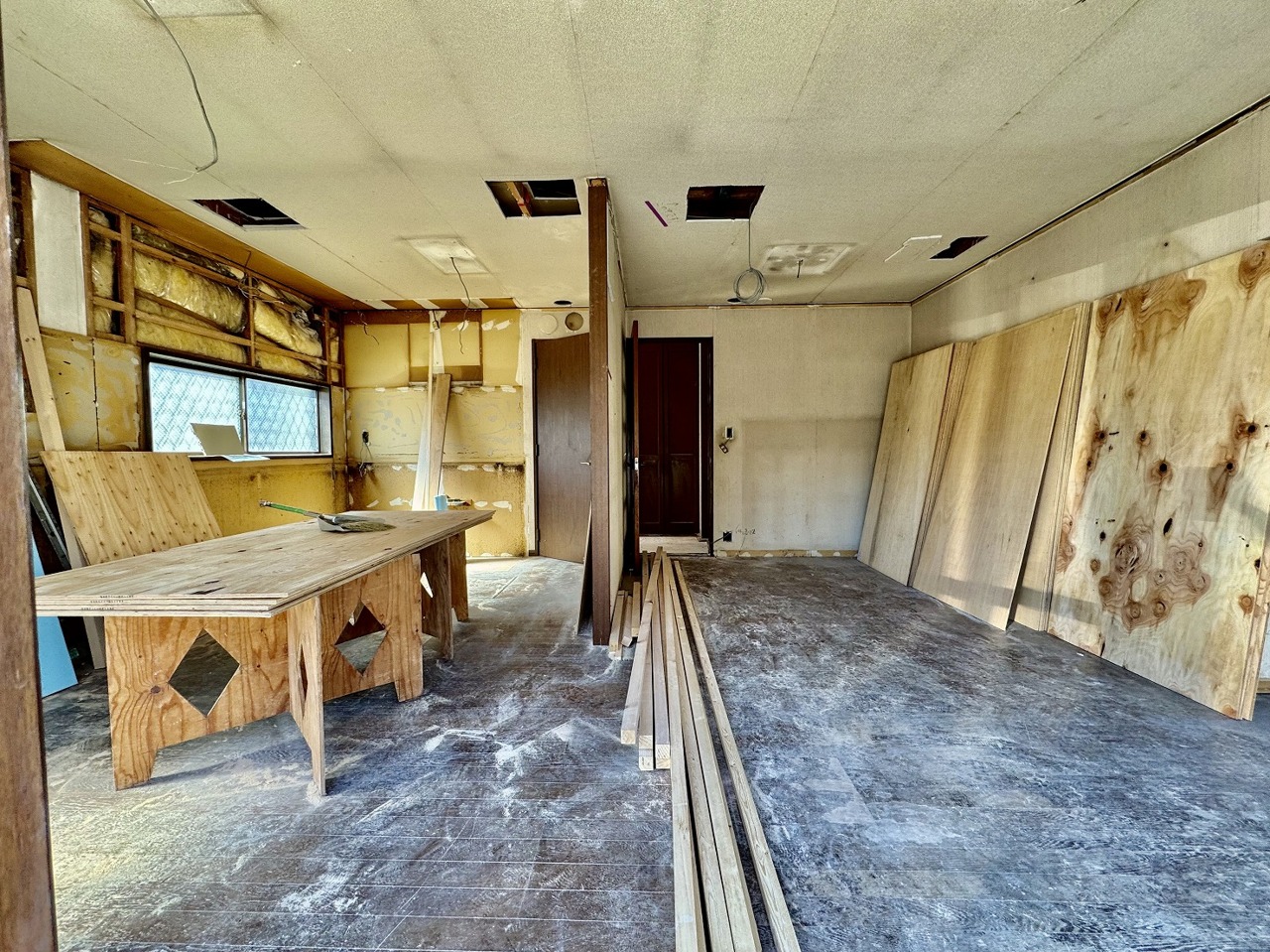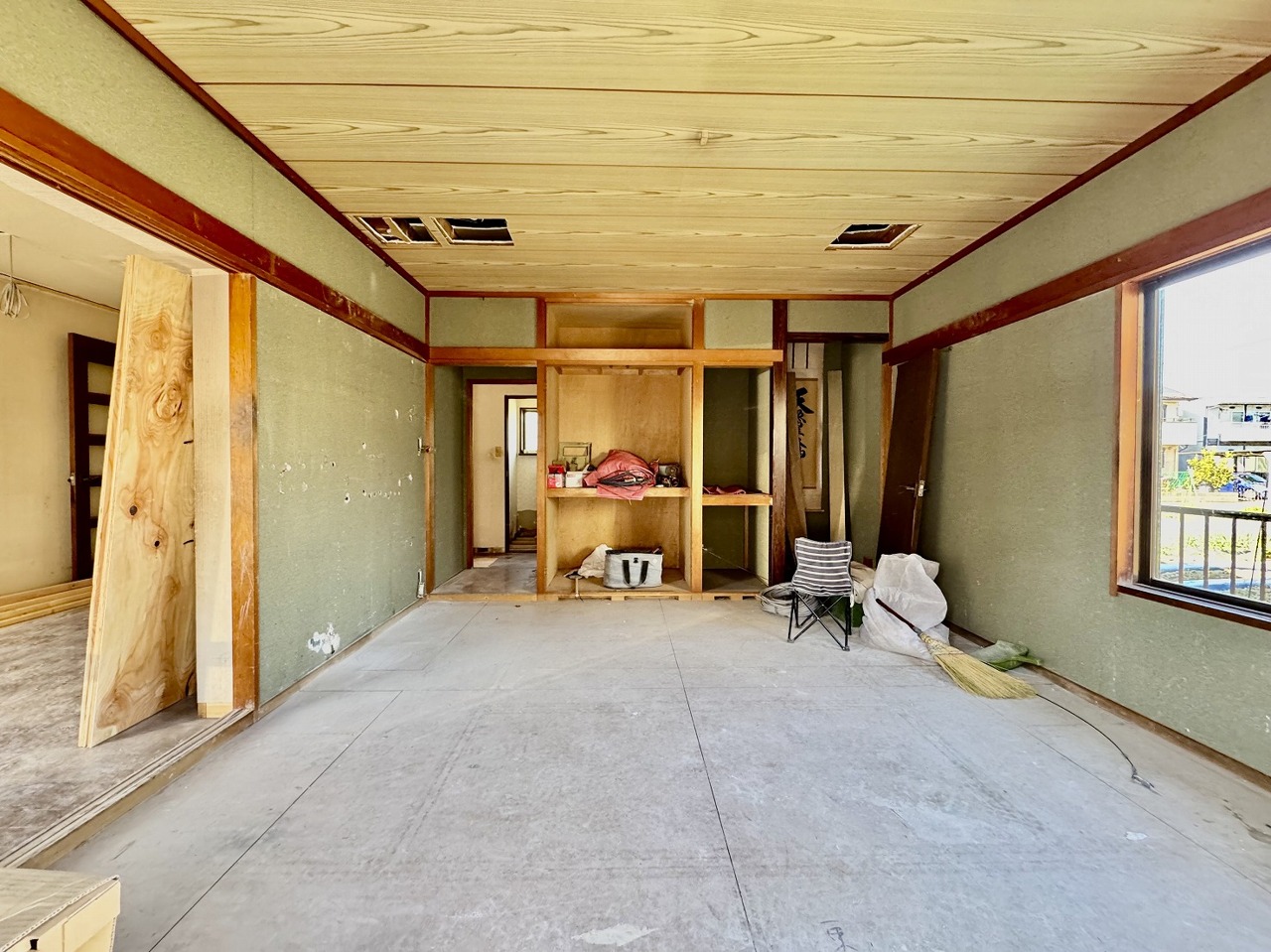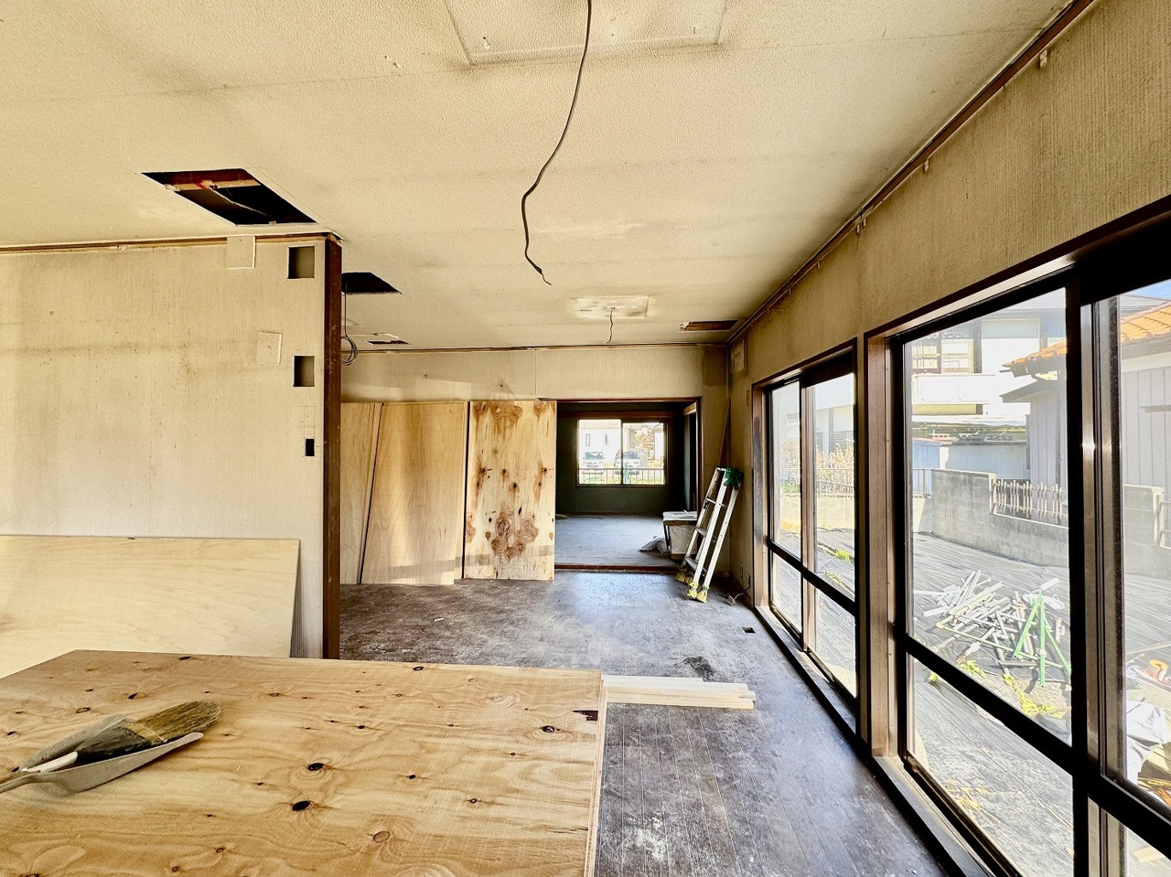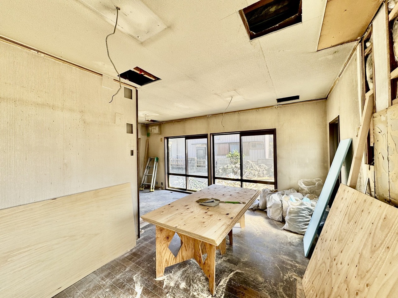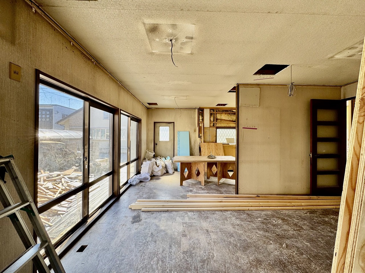 リフォーム工事中。ご家族みんながゆったりくつろげる広々リビング。