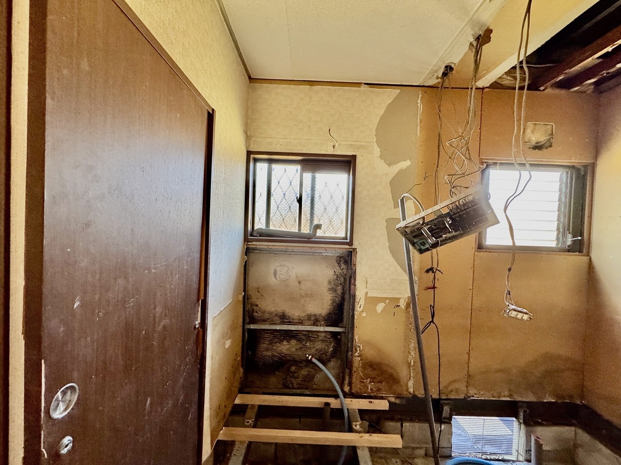 リフォーム工事中。浴室は湿気がたまりやすく、換気扇だけでは心配。。。窓をあければお風呂がカラっと乾きます。