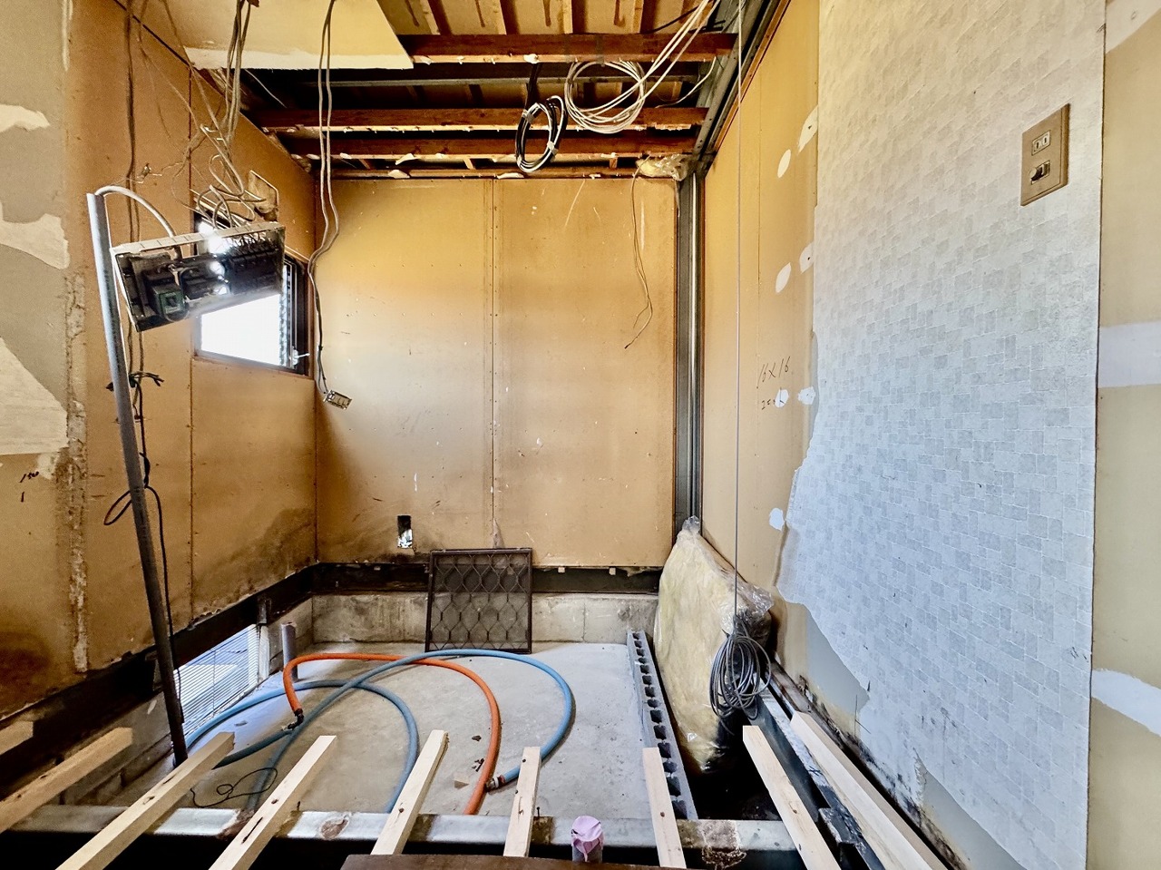 リフォーム工事中。たっぷりの収納を設けたシャワー付洗面台で快適な暮らし。