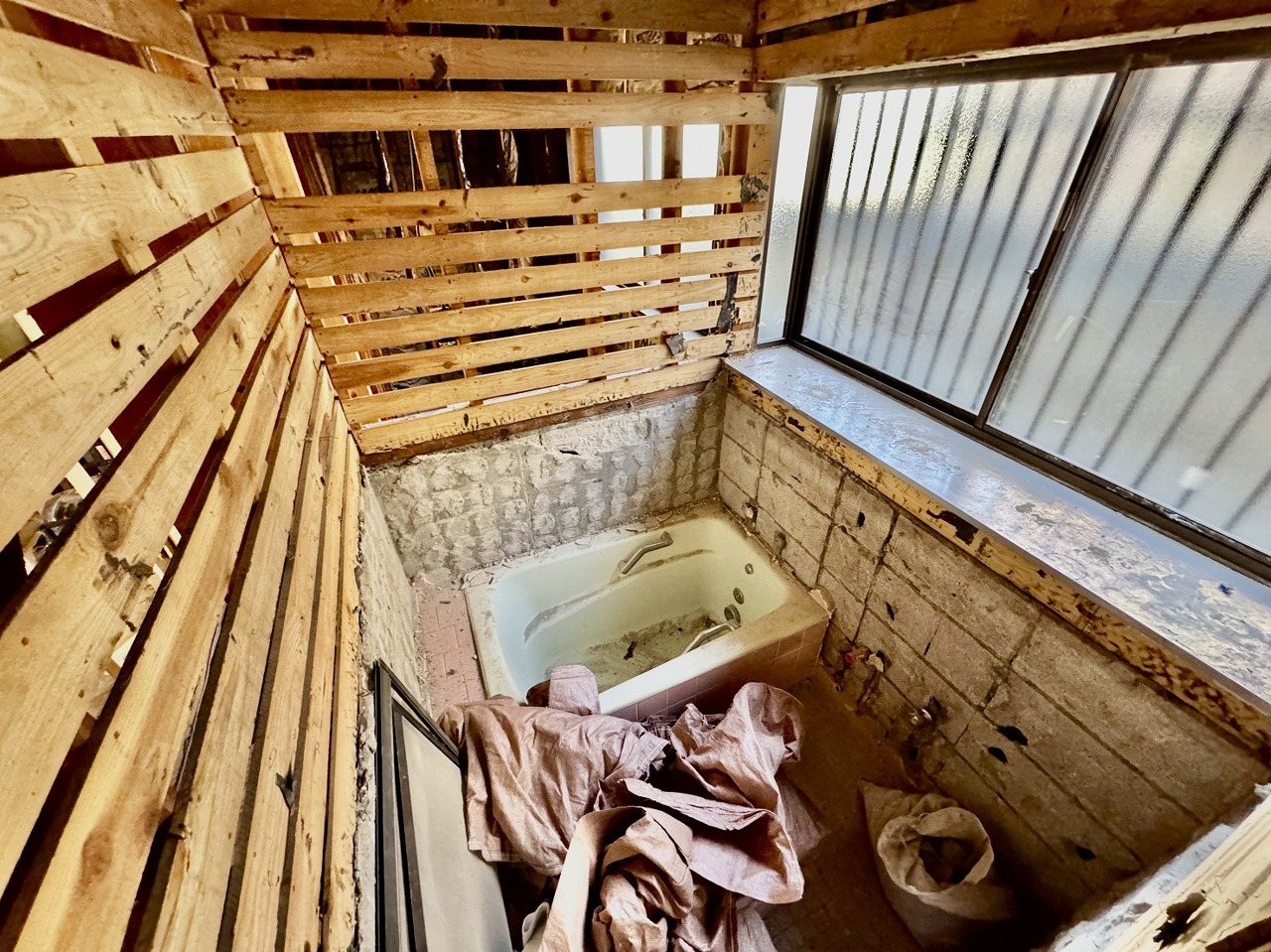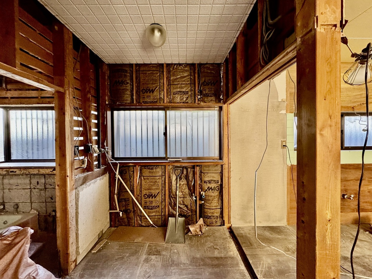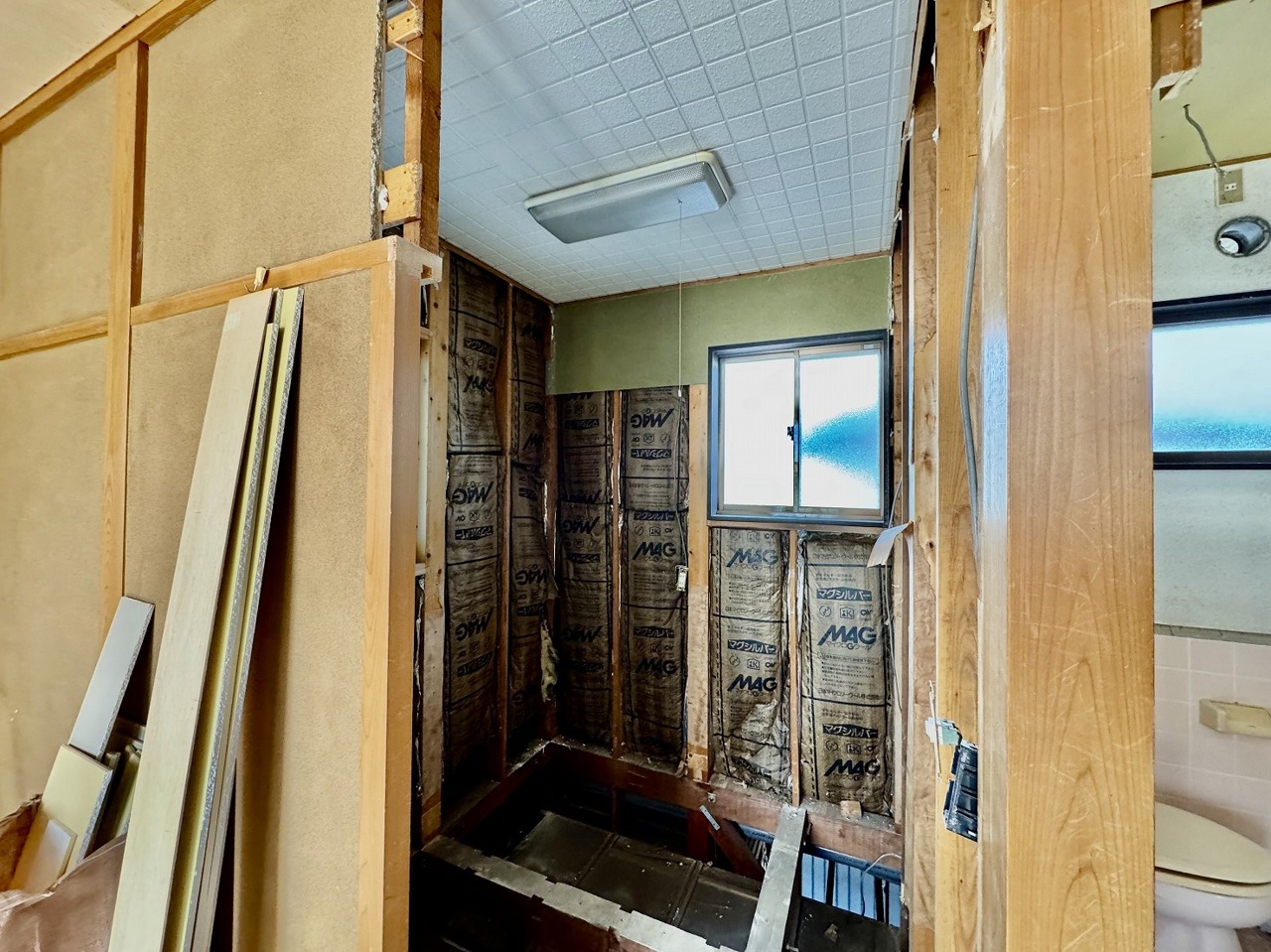 リフォーム工事中。浴室は湿気がたまりやすく、換気扇だけでは心配。。。窓をあければお風呂がカラっと乾きます。