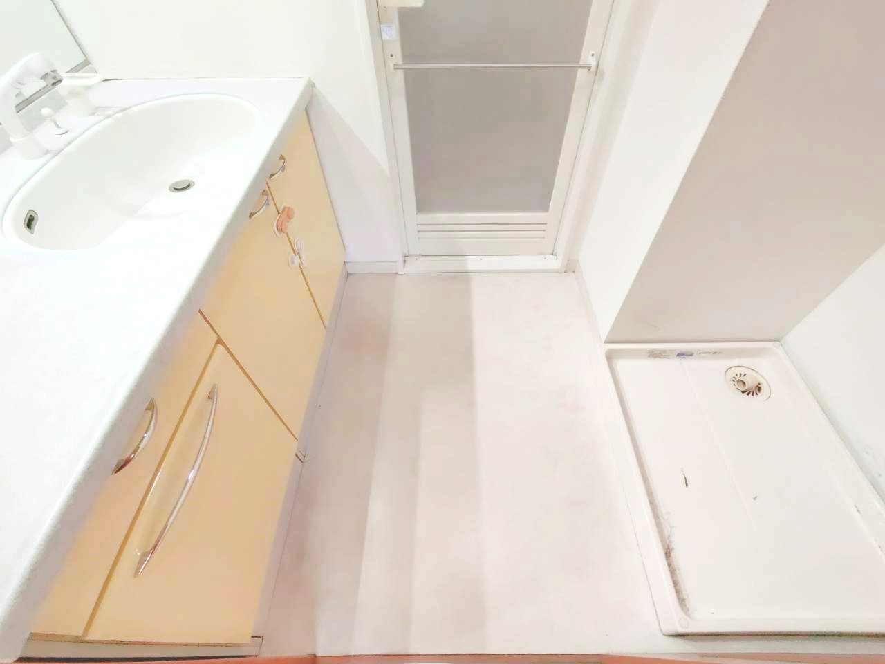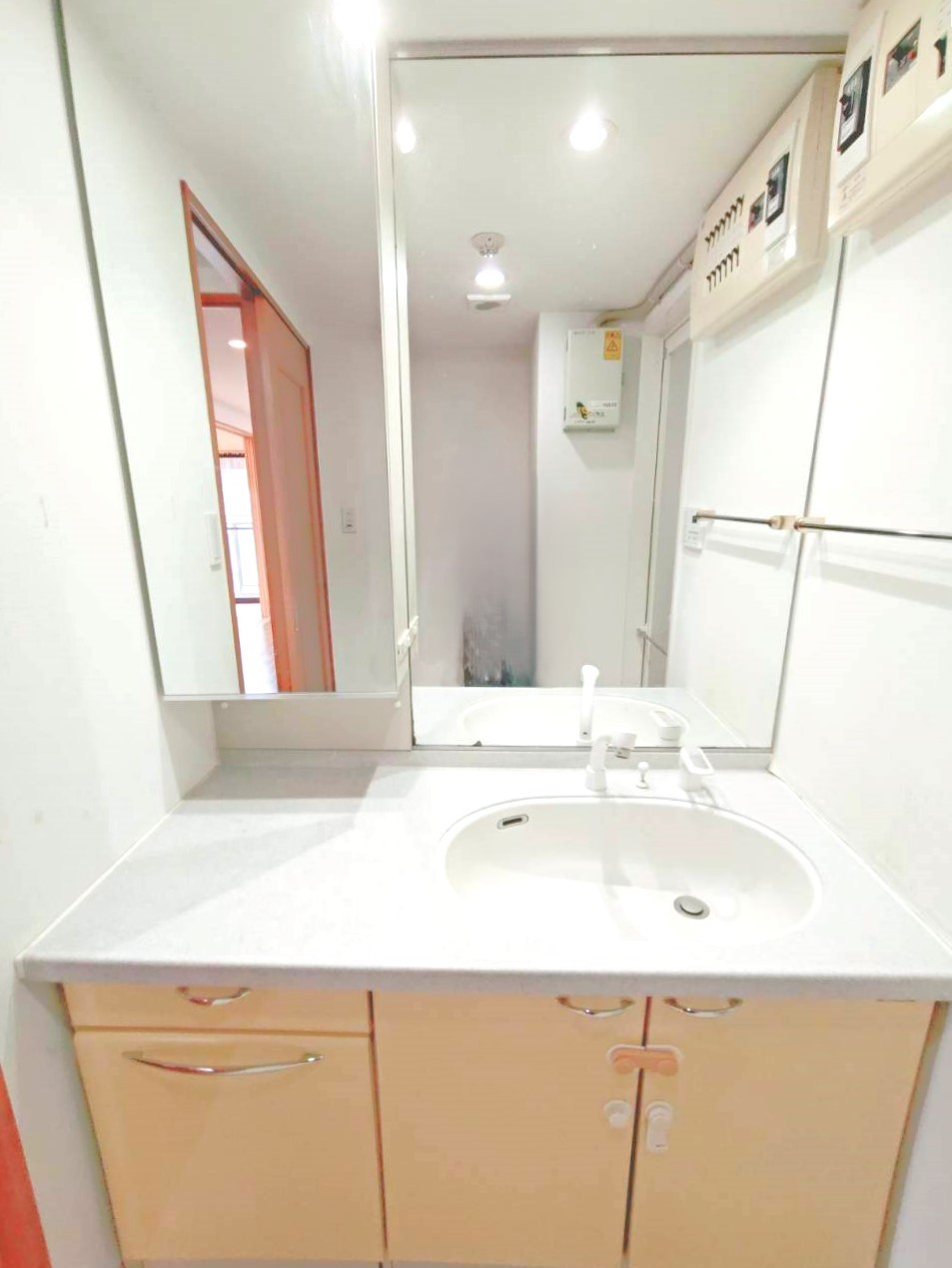 洗面化粧台は清潔感の漂うホワイトをベースカラーに、シンプルなデザインで。