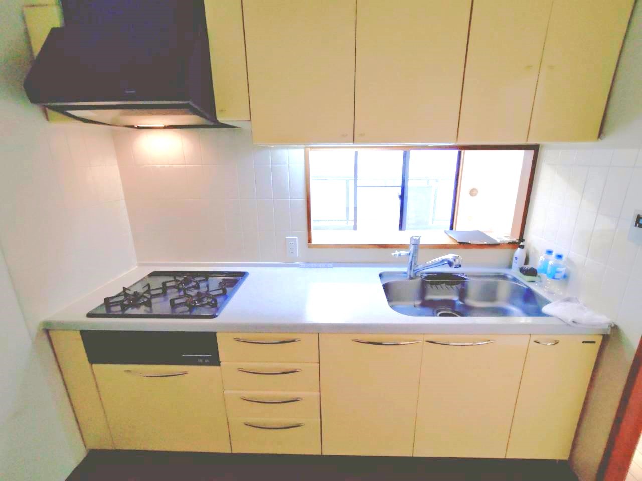 手を伸ばせばそこに収納が。安定した使用感の吊戸棚つきのキッチン空間。