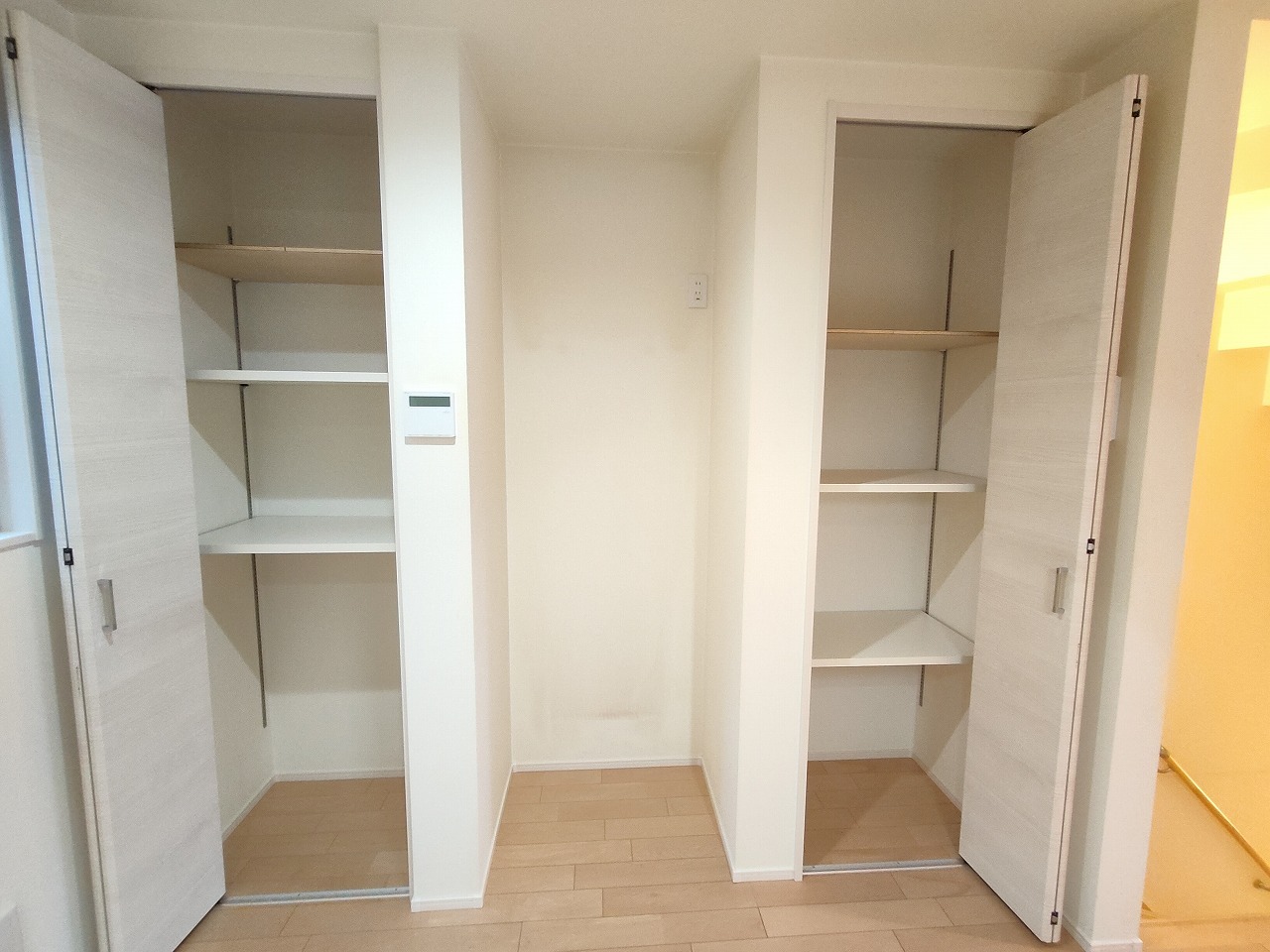 キッチン横にはパントリー収納。食品の蓄えは防災用としても。