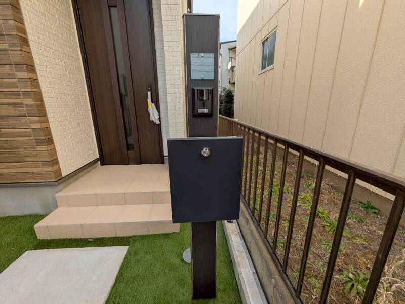 アプローチからの玄関がおしゃれな住宅。出発も帰宅も楽しみになるかも。