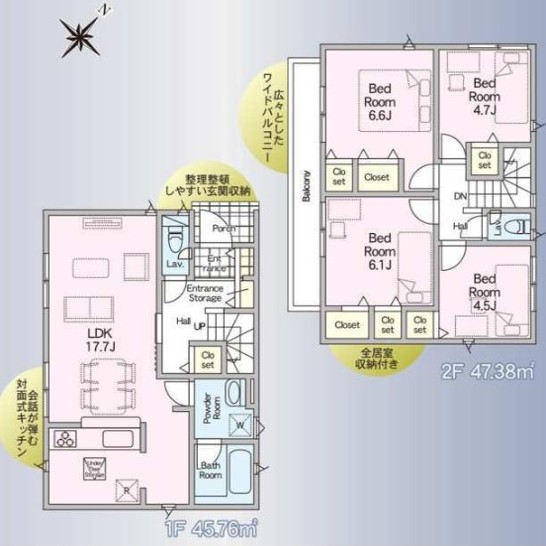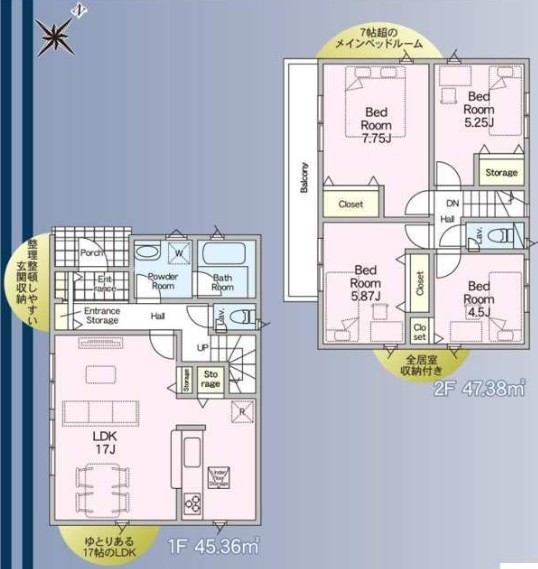 | 建物面積 | 92.74m² ~ 93.14m² 実測 | ||