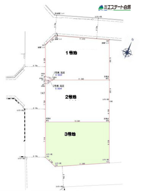 | 権利種類 | 所有権 | 接道 | 西側4.1M公道に接道 北側4.2M公道に接道 南側4.2M公道に接道 |