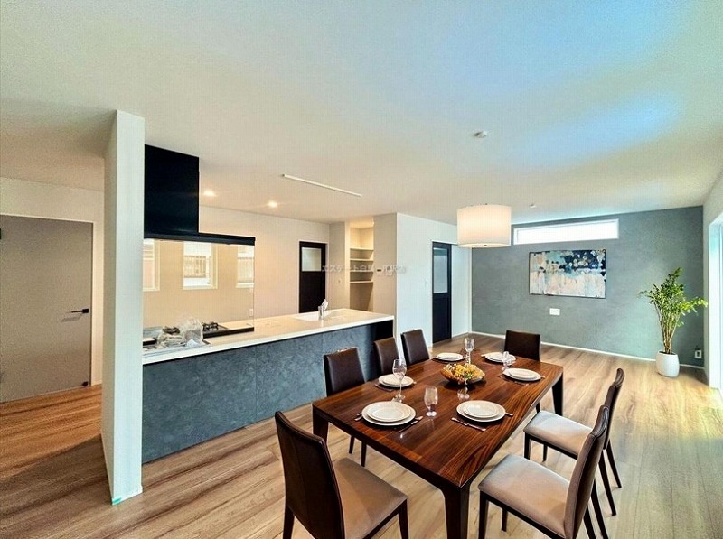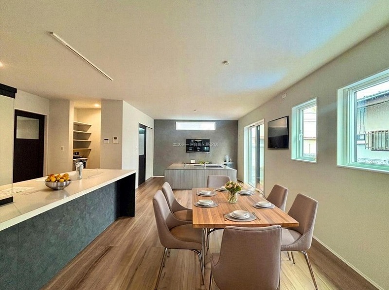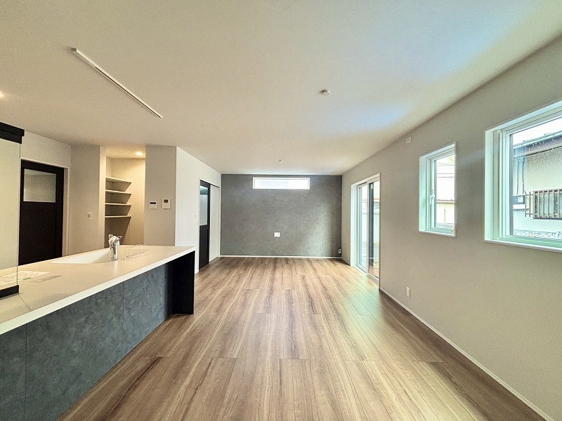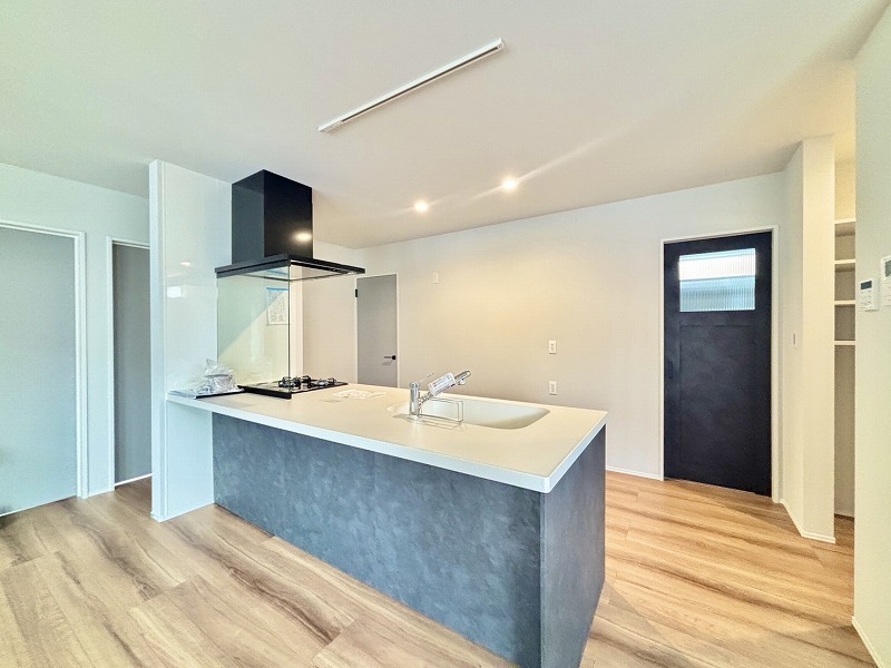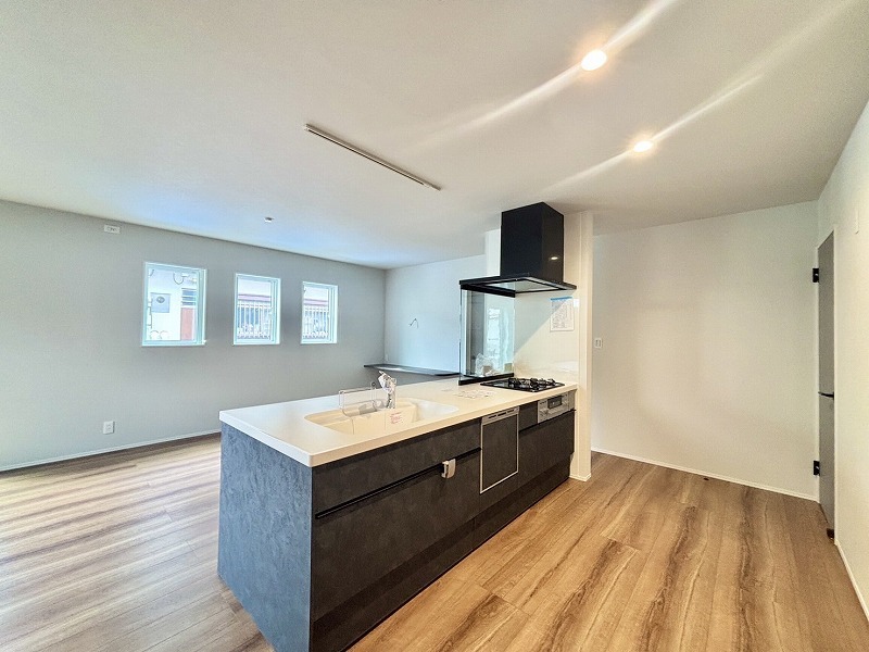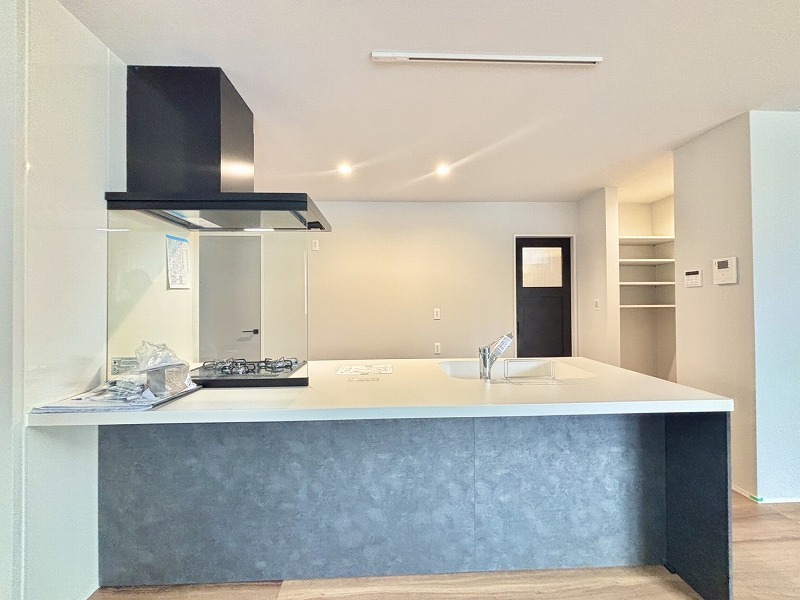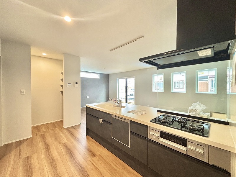リビング全体が見渡せる対面式キッチンです。お子様をリビングで遊ばせながら家事ができます。