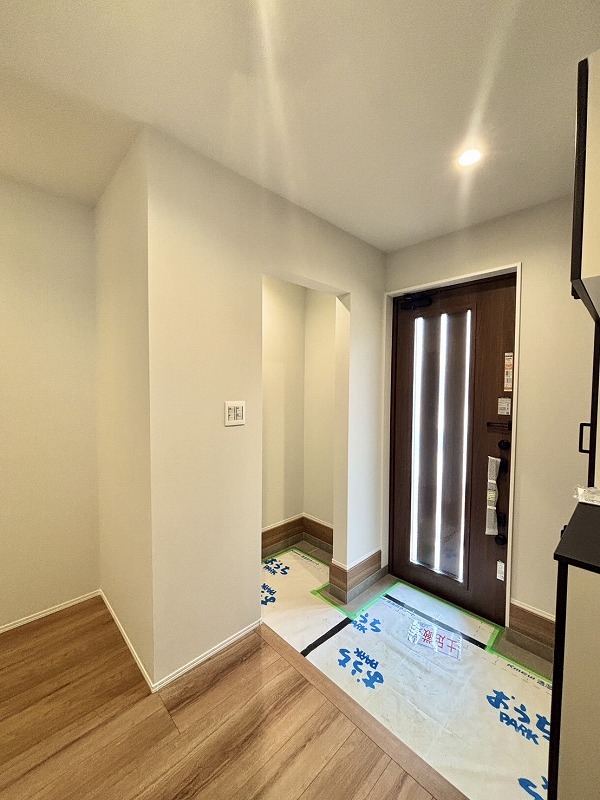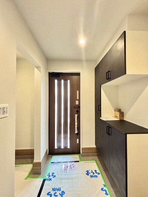 明るく開放的な玄関、靴の脱ぎ履きもしやすく、収納も豊富でご家族皆様の靴をスッキリ収納できます。