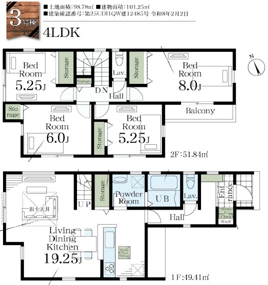 | 間取 | 4LDK (LDK19.25帖、洋室8.0帖、洋室6.0帖、洋室5.25帖、洋室5.25帖) | ||