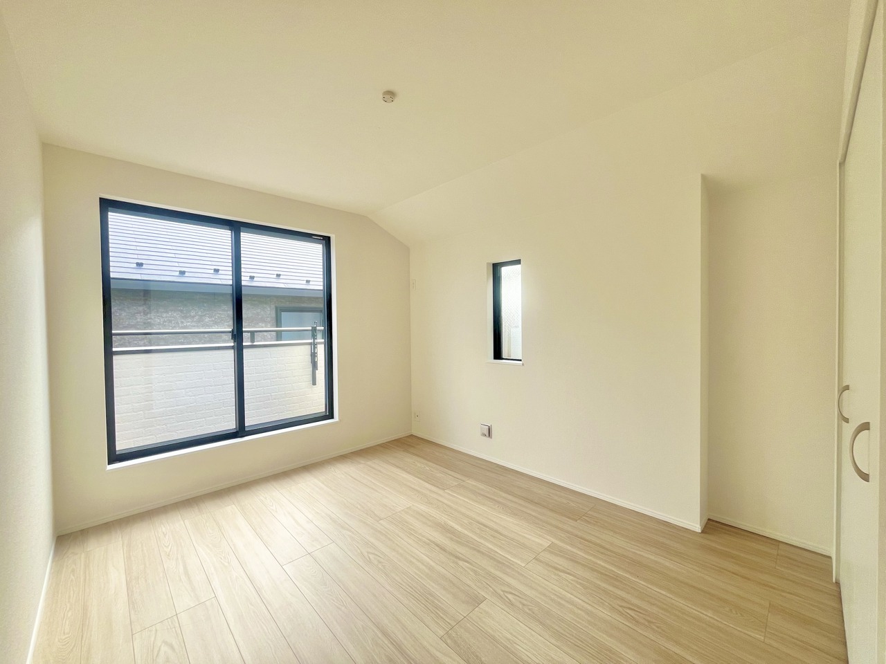 A号棟 バルコニーに面した6.5帖の洋室。開口部からは優しい陽光が差し込み心地よい風が通り抜けます。