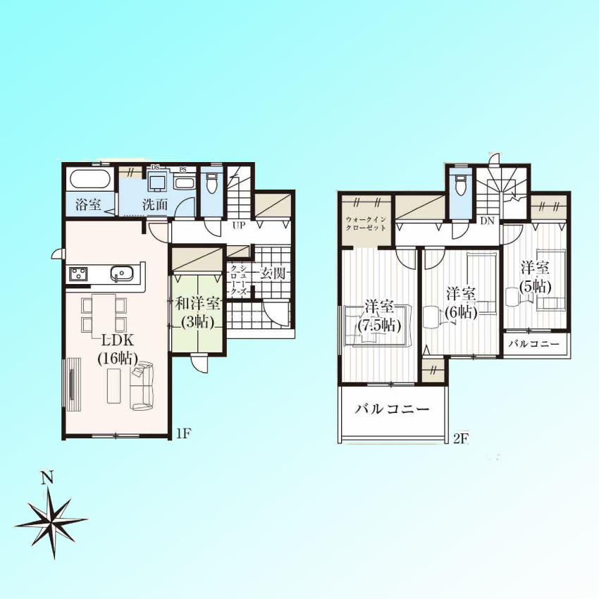 | 間取 | 4LDK (LDK16帖、和室3帖、洋室7.5帖、洋室6帖、洋室5帖) | ||