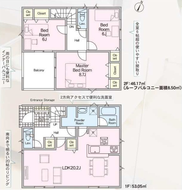 | 間取 | 3LDK (LDK20.2帖、洋室8.7帖、洋室6帖、洋室6帖) | ||
