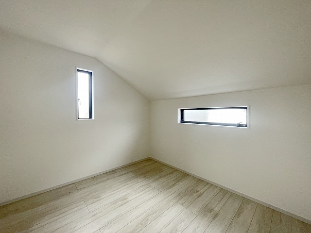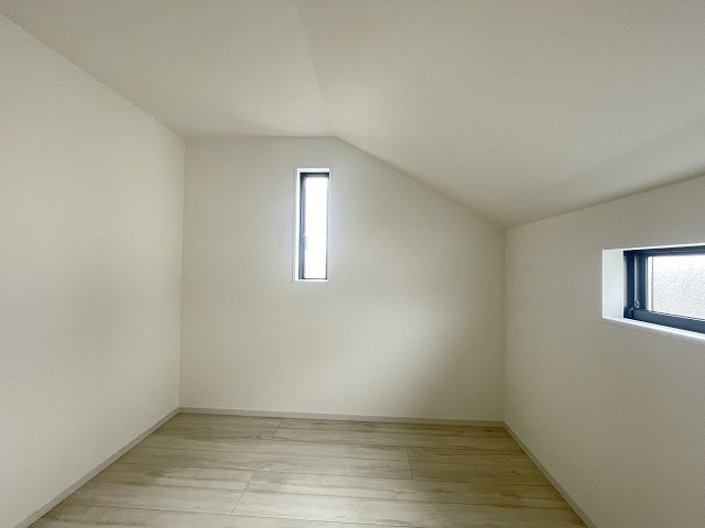 勾配天井の2階のお部屋。この勾配の角度がお洒落な雰囲気を感じさせてくれます。