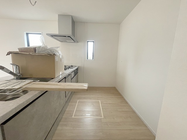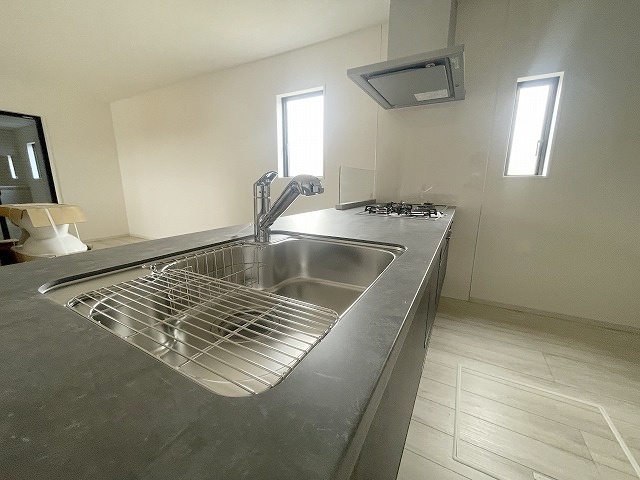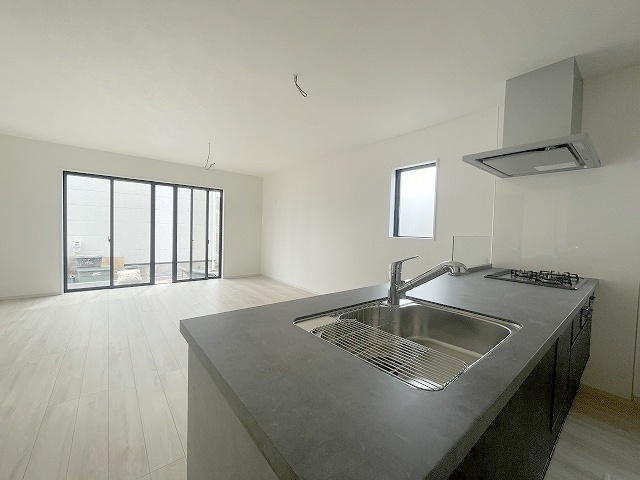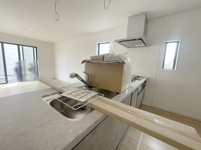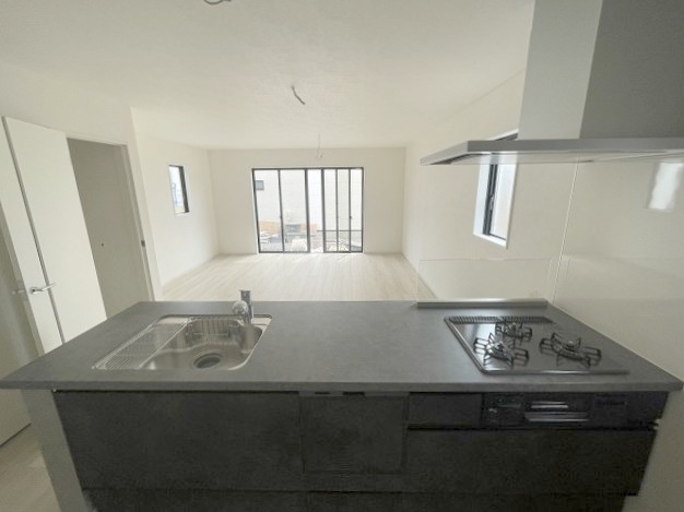 2号棟 カウンターキッチンならではの開放的な見通し、全体が見渡せることでご家族の団欒スペースもより明るく笑顔が溢れる空間となります。