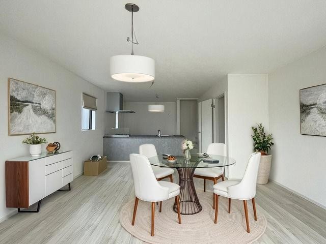3号棟 家族が食事するダイニングスペースをキッチンから見渡せる設計に。お料理をしながら家族とのコミュニケーションが増えそうな予感。