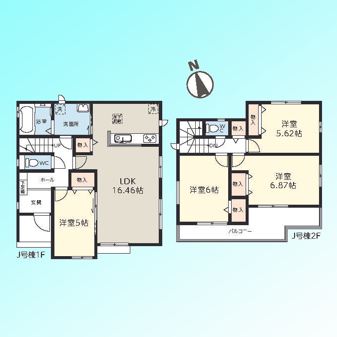| 間取 | 4LDK (LDK16.46帖、洋室5帖、洋室5.62帖、洋室6帖、洋室6.87帖) | ||