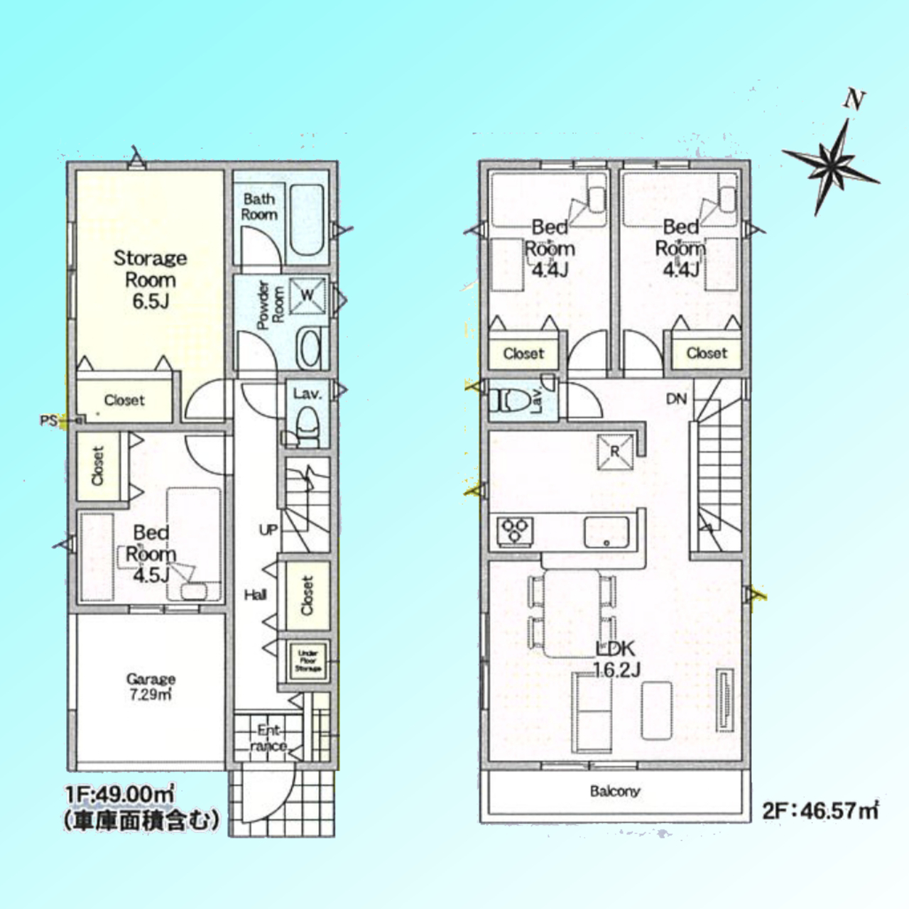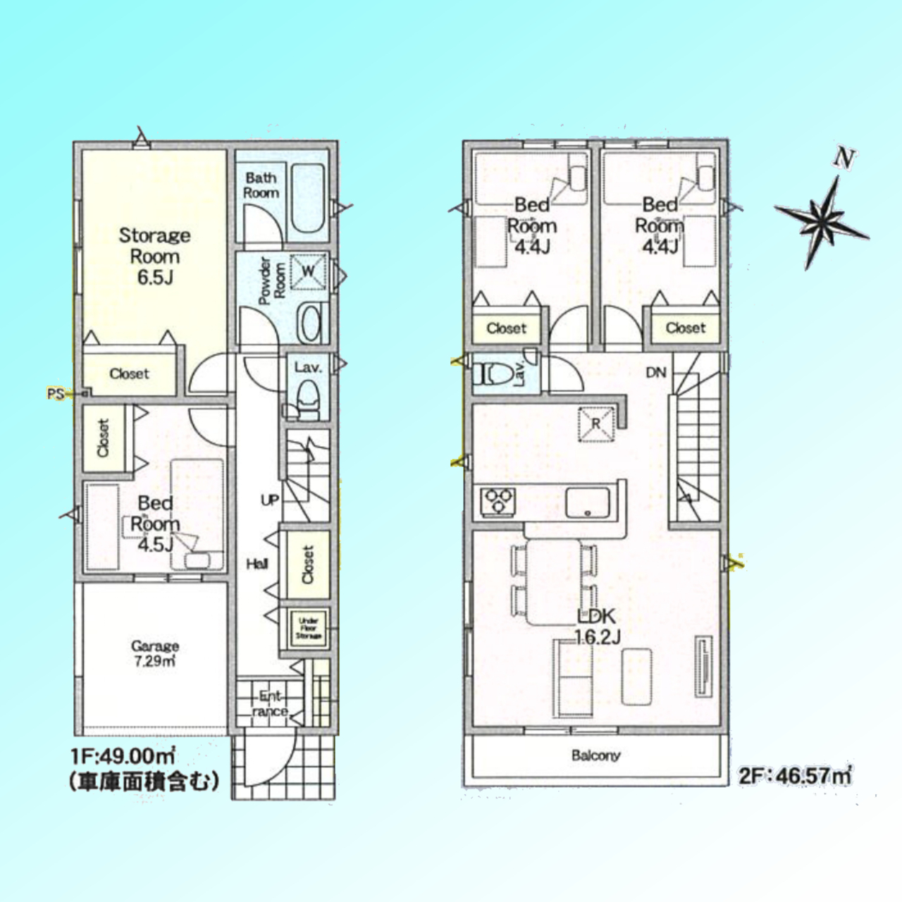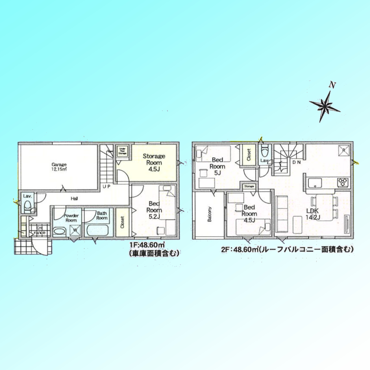 | 建物面積 | 84.24m² ~ 95.57m² 実測 (車庫部分含む) | ||