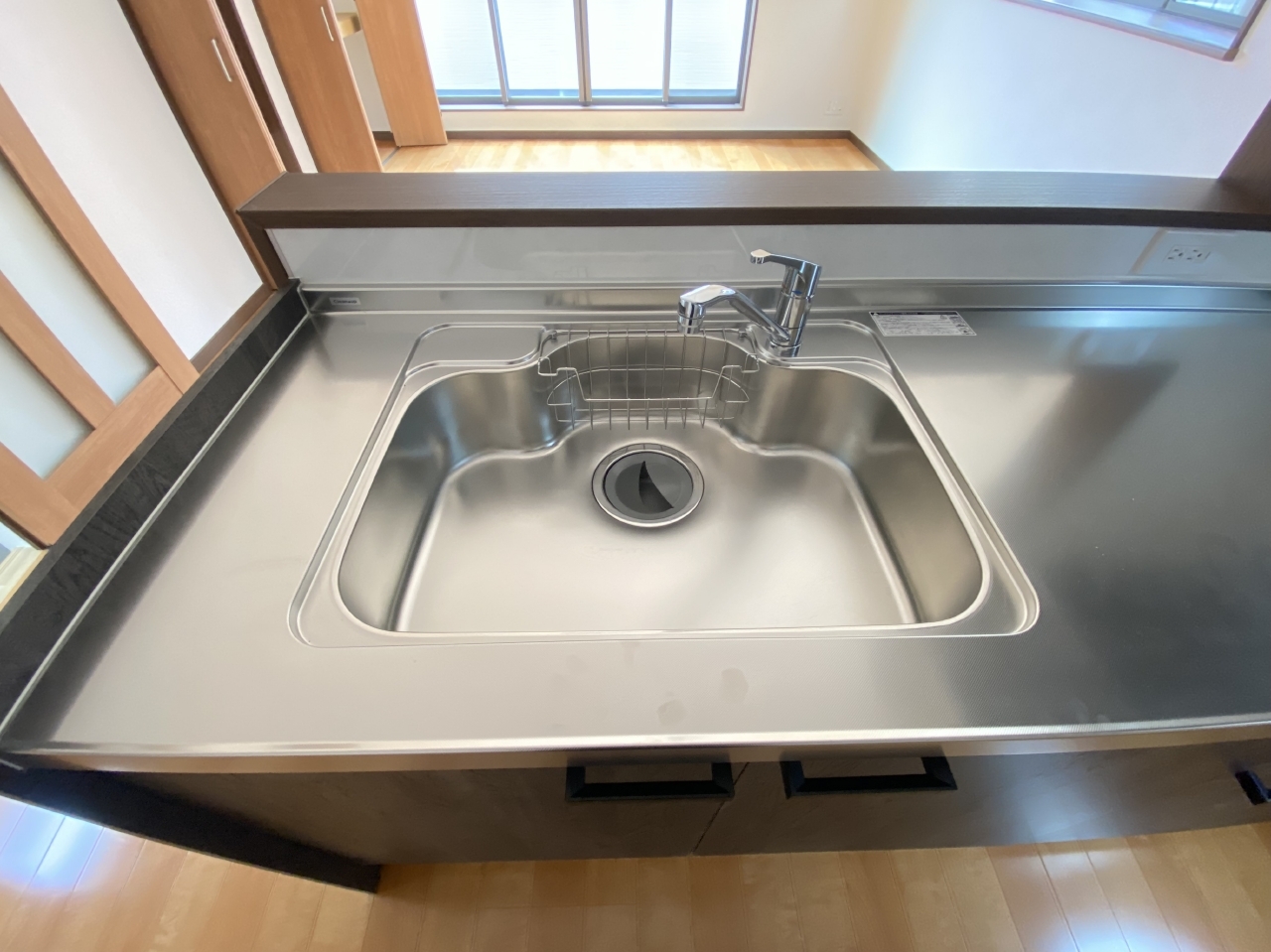 照り返しが眩しいシンク付きのキッチンで、楽しくお料理しませんか。