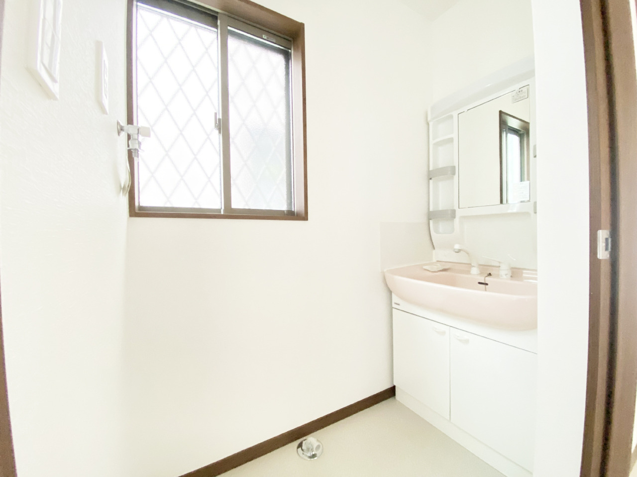 洗面化粧台は清潔感の漂うホワイトをベースカラーに、シンプルなデザインで。