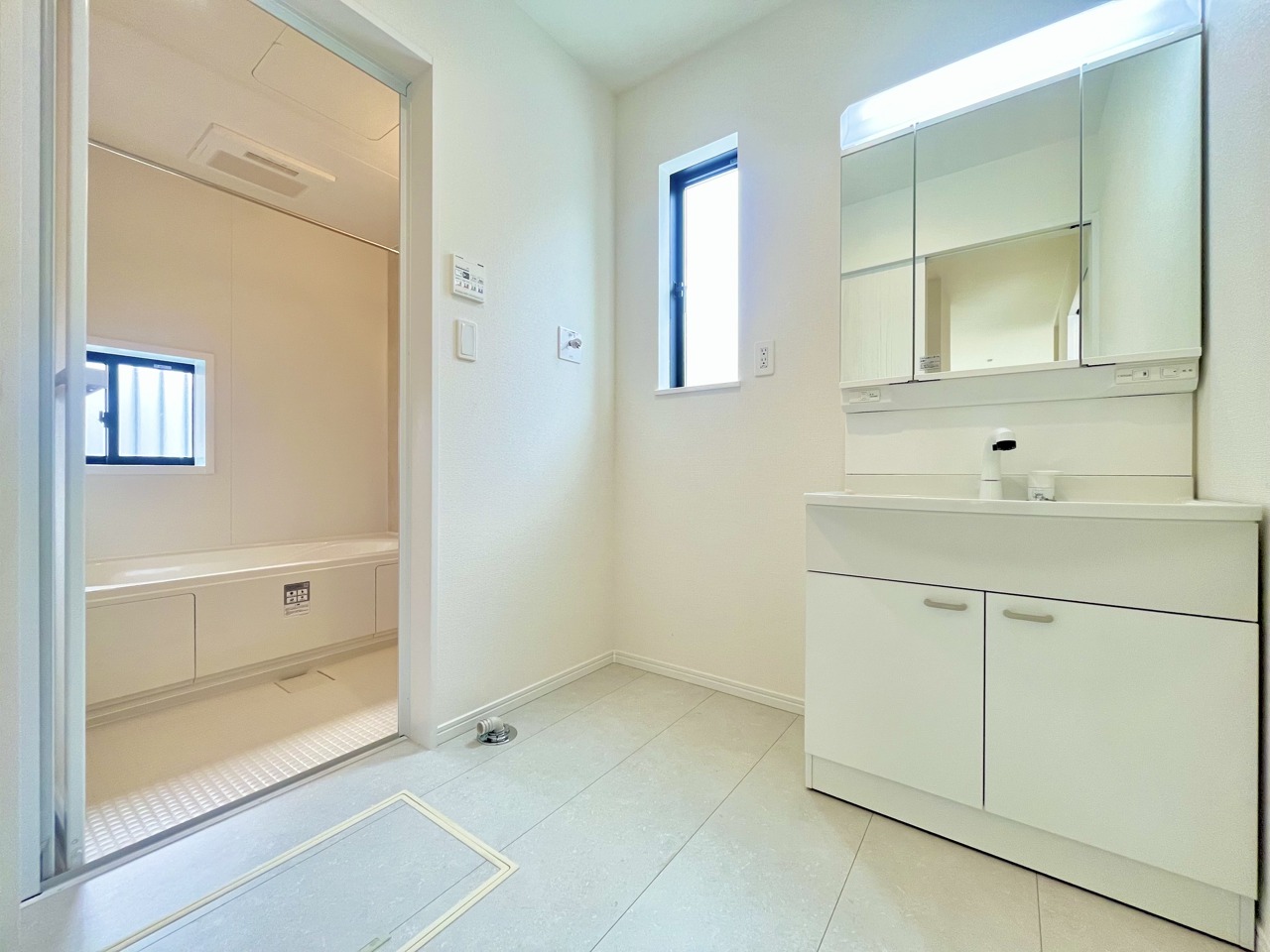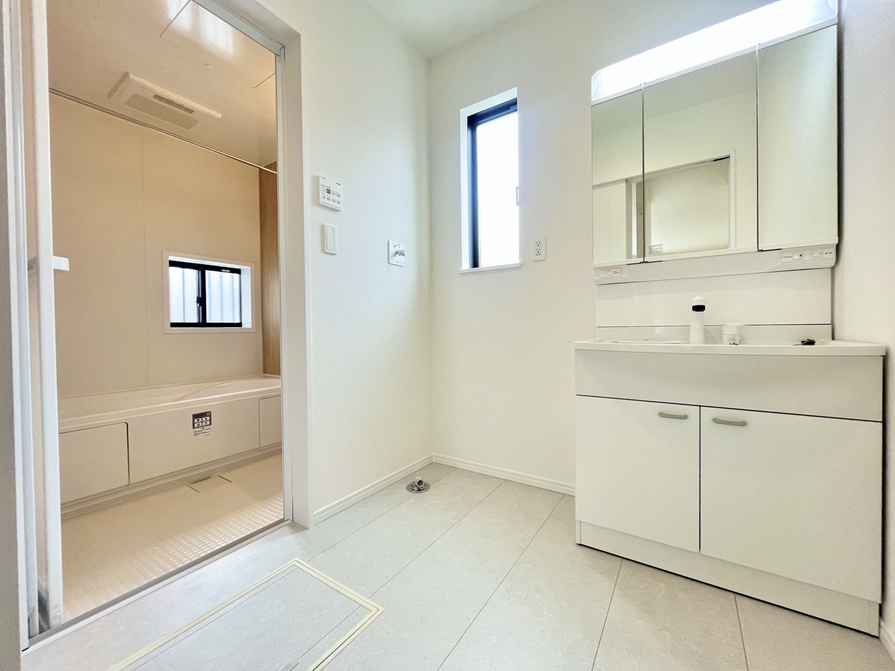 1-B号棟 ゆとりの洗面スペースで朝の身支度もスムーズに行えます。 2026/03/22m
