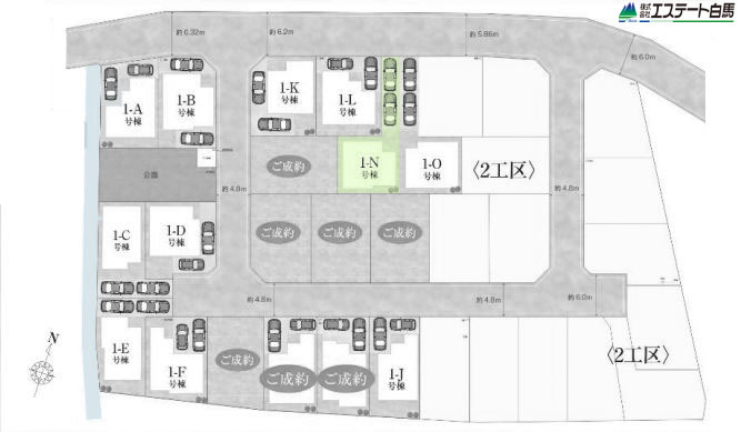 1-J号棟 6m幅員の道路に面しておりお車の運転が苦手な方でも安心して出入りいただけます。
