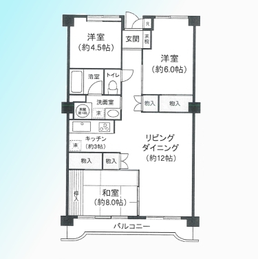 | 間取 | 3LDK (LDK15帖、和室8帖、洋室4.5帖、洋室6帖) | ||