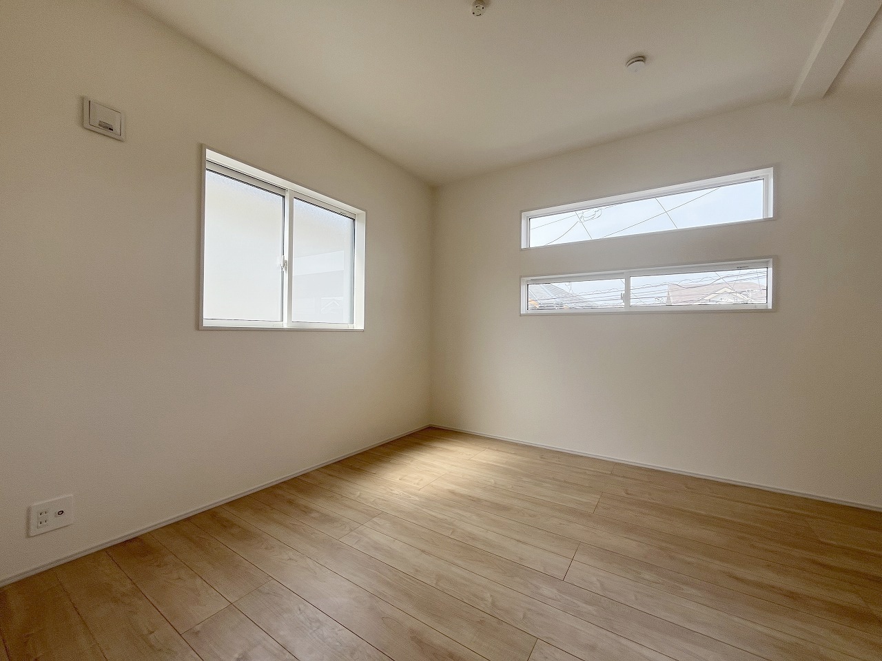 2号棟 洋室はモダンなデザインと機能性を備え、快適な生活空間に。明るい窓から差し込む自然光が広々とした空間をさらに明るく開放的に感じさせます。