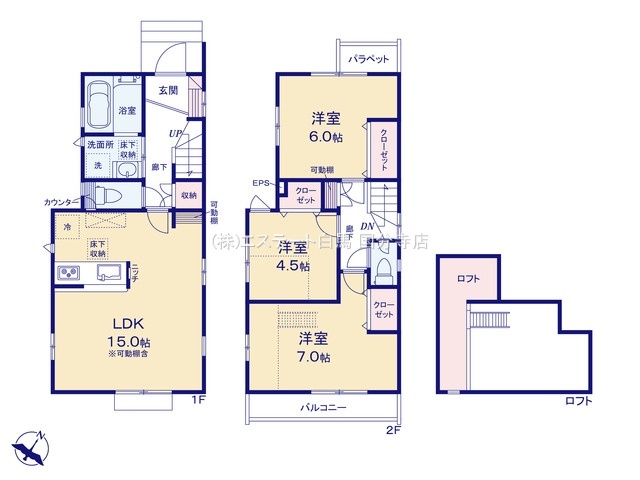 2号棟 吹抜けの空間を意識した開放感のある間取り。そして上部にロフトを配置。スタイリッシュかつ収納も豊富で長く機能的に住める家を目指して。
