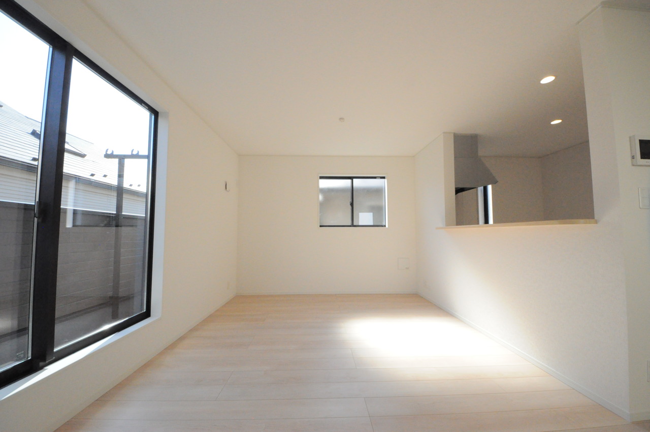 大きな開口部から明るい光が差し込むリビング。日中の室内の明るさがこの部屋の魅力です。