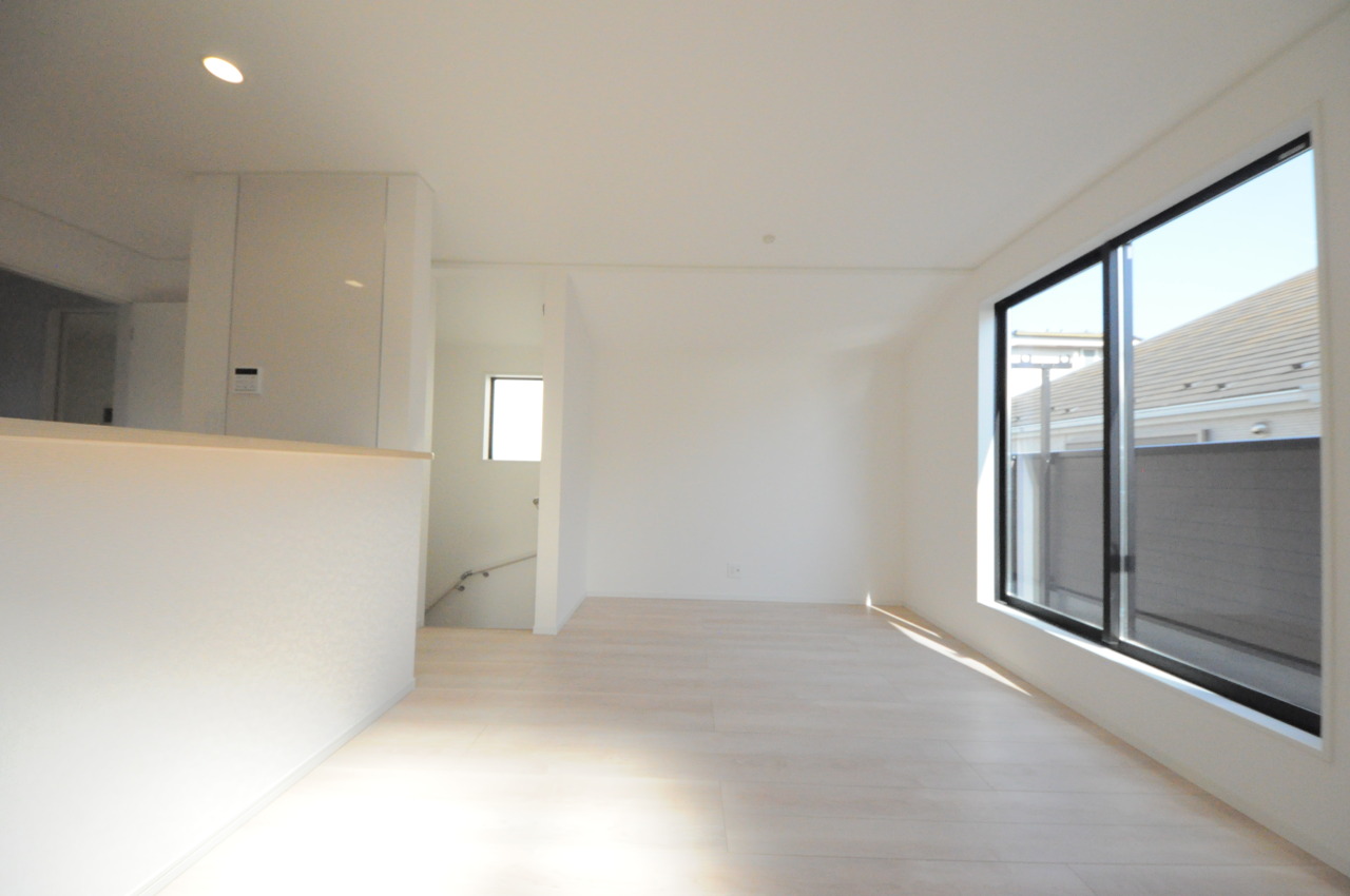 家族や友人、両親、親戚とこれから沢山の時間を紡ぐのだろう。そこを彩るのは窓から見える青い空、心地よい緑。そんなイメージが膨らむリビングスペース。