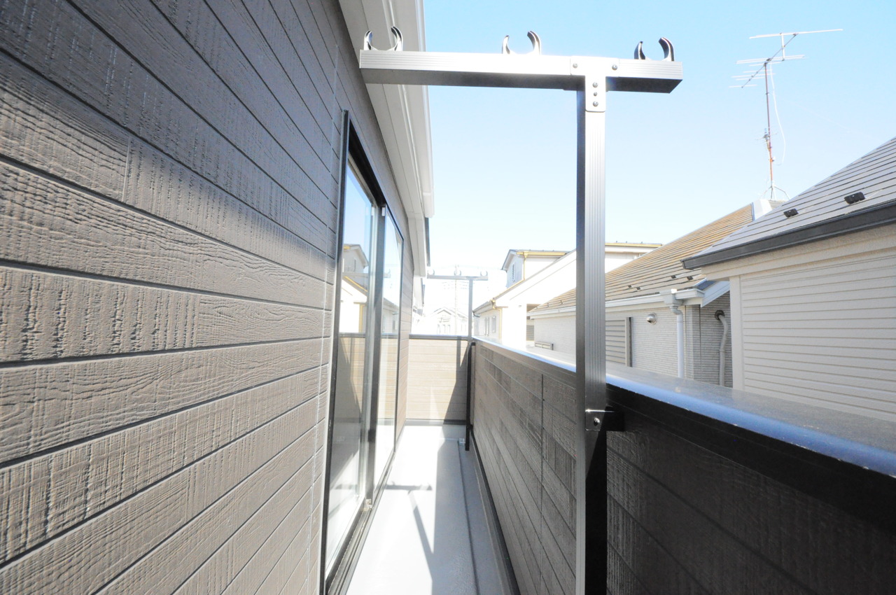 陽ざしが差込む明るいバルコニー。奥行きのあるバルコニーはお洗濯時に助かります。