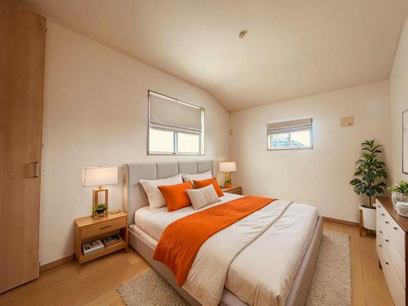 洋室はモダンなデザインと機能性を備え、快適な生活空間に。明るい窓から差し込む自然光が広々とした空間をさらに明るく開放的に感じさせます。