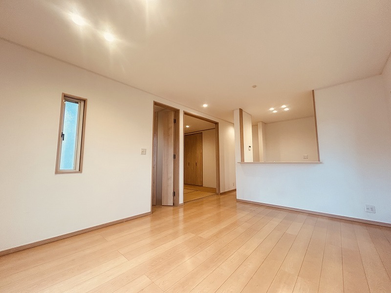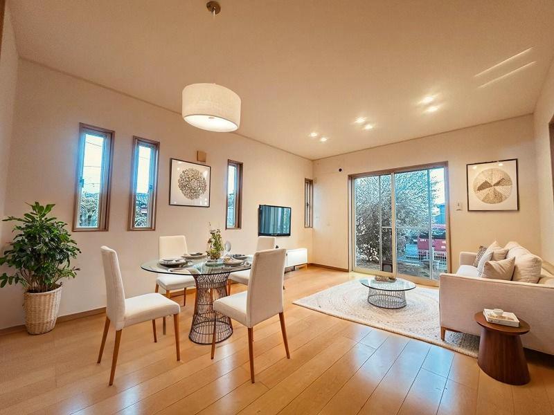 ゆとりのあるサイズのリビングダイニング。 お食事スペースと、お寛ぎ空間を分けてご利用可能。 少し大きめのソファーを置いて、 一家団欒なお時間をご共有ください。