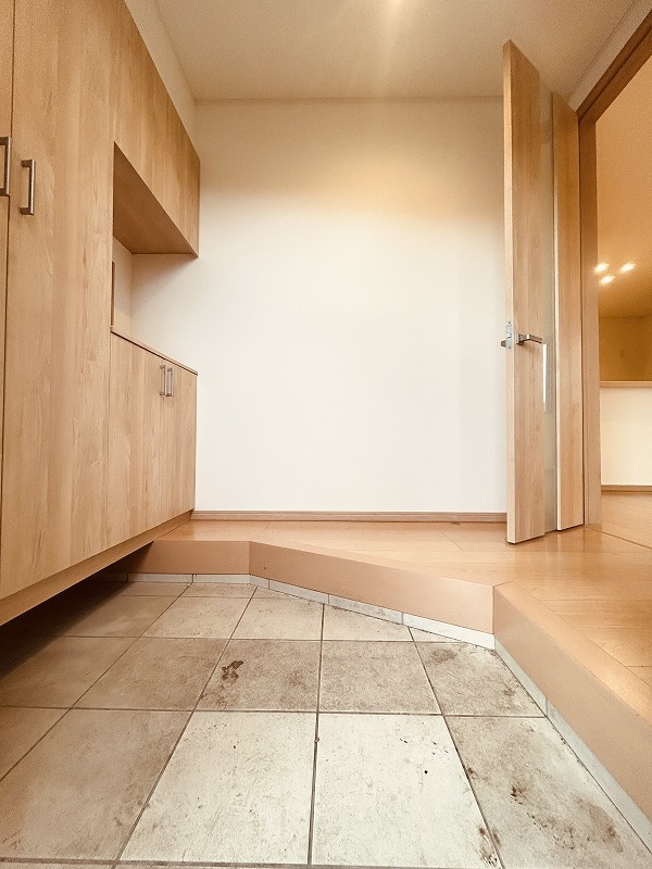 玄関は家の第一印象を左右する重要な場所。ほどよい広さとスタイリッシュな色遣いが印象的です。