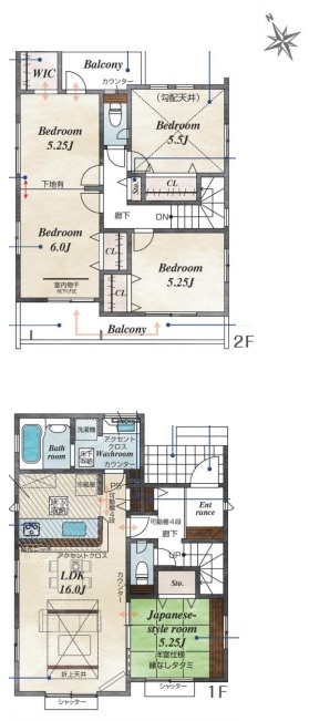 | 間取 | 4LDK (LDK16帖、和室5.25帖、洋室11.25帖、洋室5.5帖、洋室5.25帖) | ||