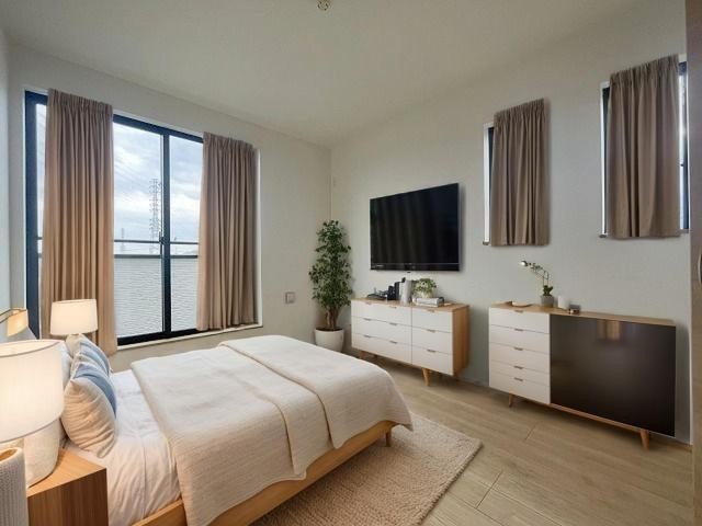 洋室はモダンなデザインと機能性を備え、快適な生活空間に。明るい窓から差し込む自然光が広々とした空間をさらに明るく開放的に感じさせます。