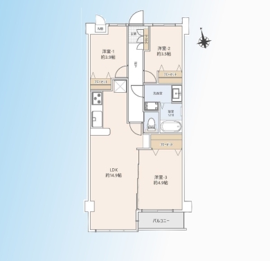 | 間取 | 3LDK (LDK14.9帖、洋室3.9帖、洋室3.5帖、洋室4.9帖) | ||