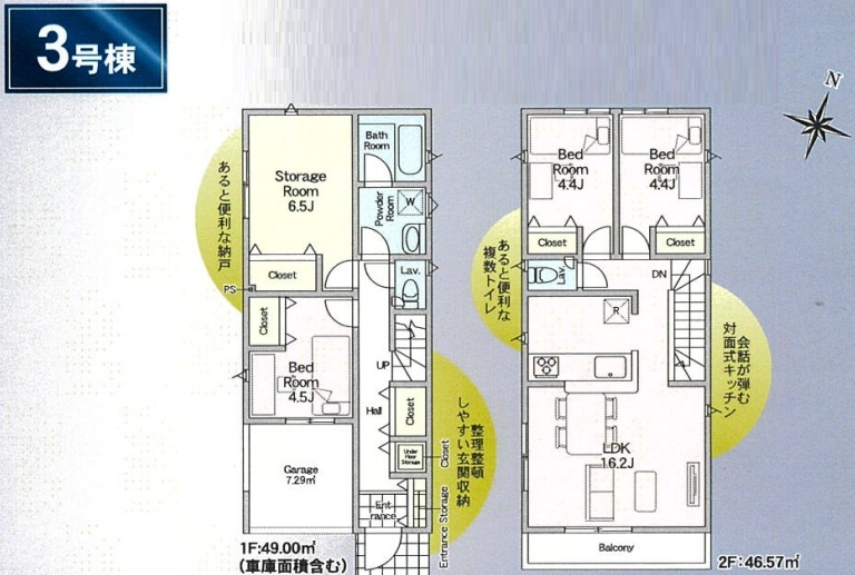 | 建物面積 | 95.57m² 実測 (車庫部分9.72平米含む) | ||
