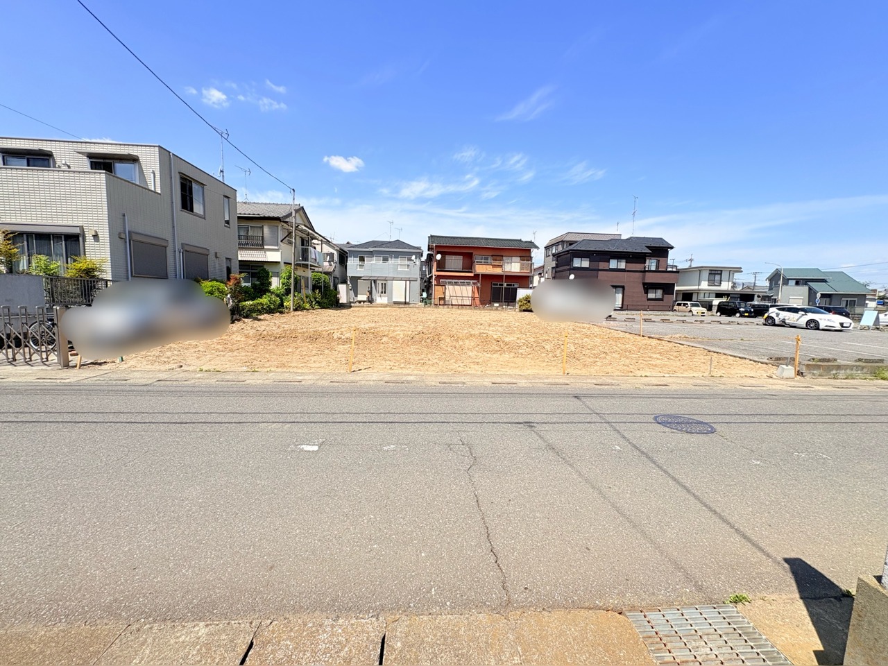 南側6m公道に面した開放的な区画に、駐車スペースも2台完備 。