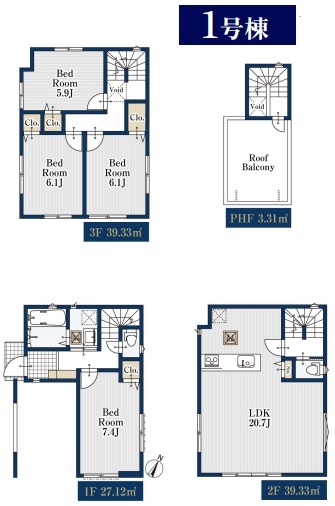 | 間取 | 4LDK (LDK20.7帖、洋室7.4帖、洋室6.1帖、洋室6.1帖、洋室5.9帖) | ||