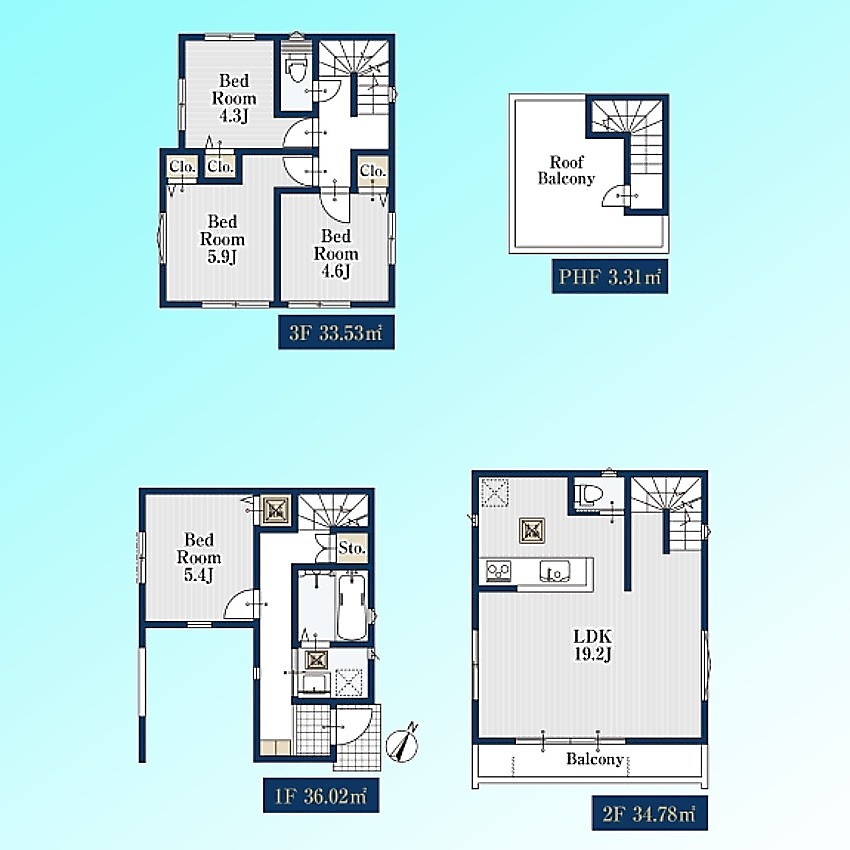 | 建物面積 | 107.64m² ~ 120.26m² 実測 | ||